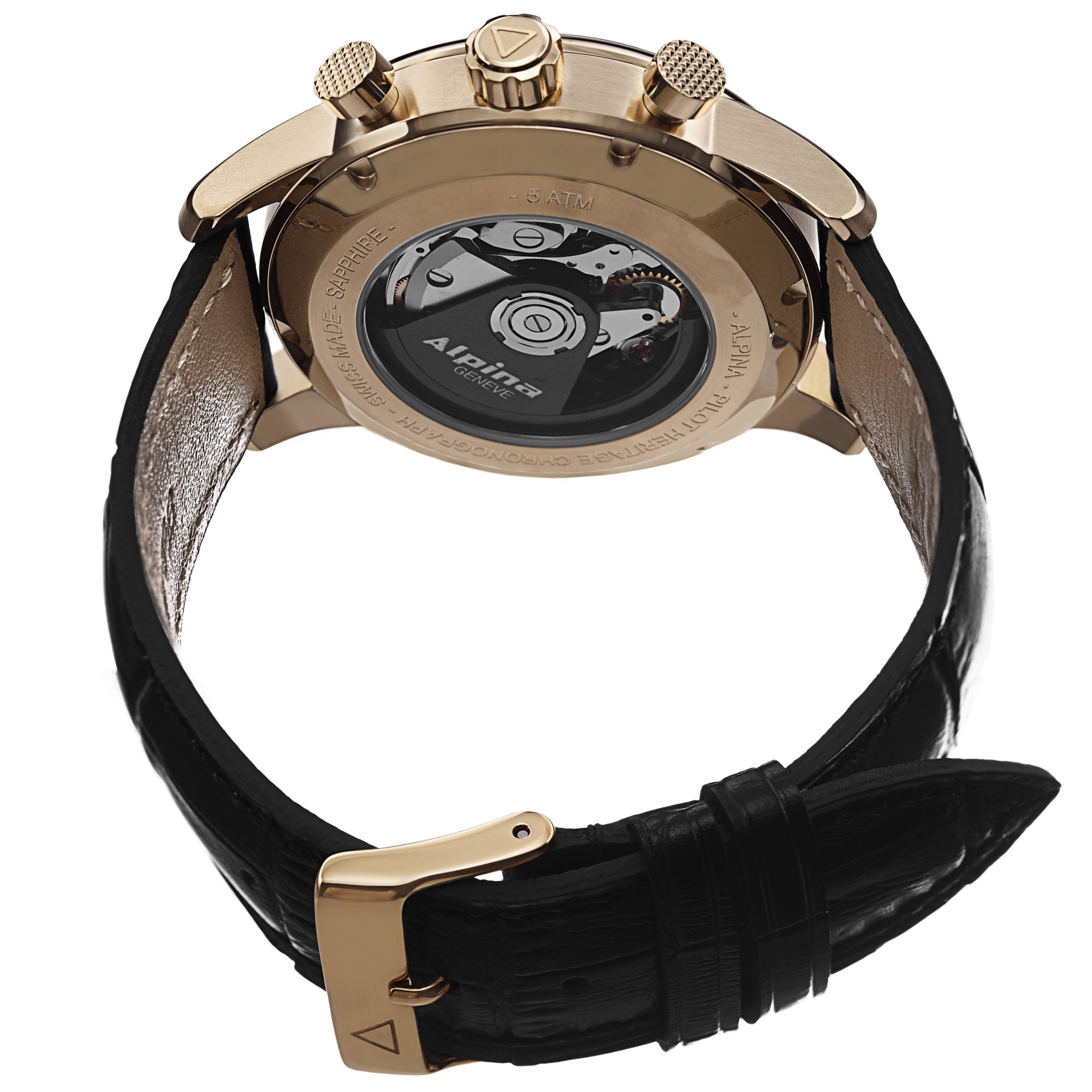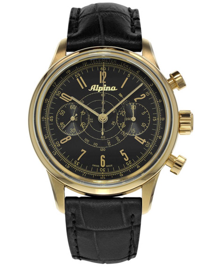 Alpina 130 Pilot Heritage fascinantan sat, koji je obeležio proslavu 130 godina Alpine. Taman brojčanik sa hronografskim displejom, kao i telemetrom i tahimetrijskom skalom. Kazaljke i brojevi su pozlaćeni, kako bi se savršeno podudarali sa pozlaćenim kućištem. Otvoreno kućište Vam omogućava da vidite zadivljujući automatski pokret hronografa sa zadnje strane.