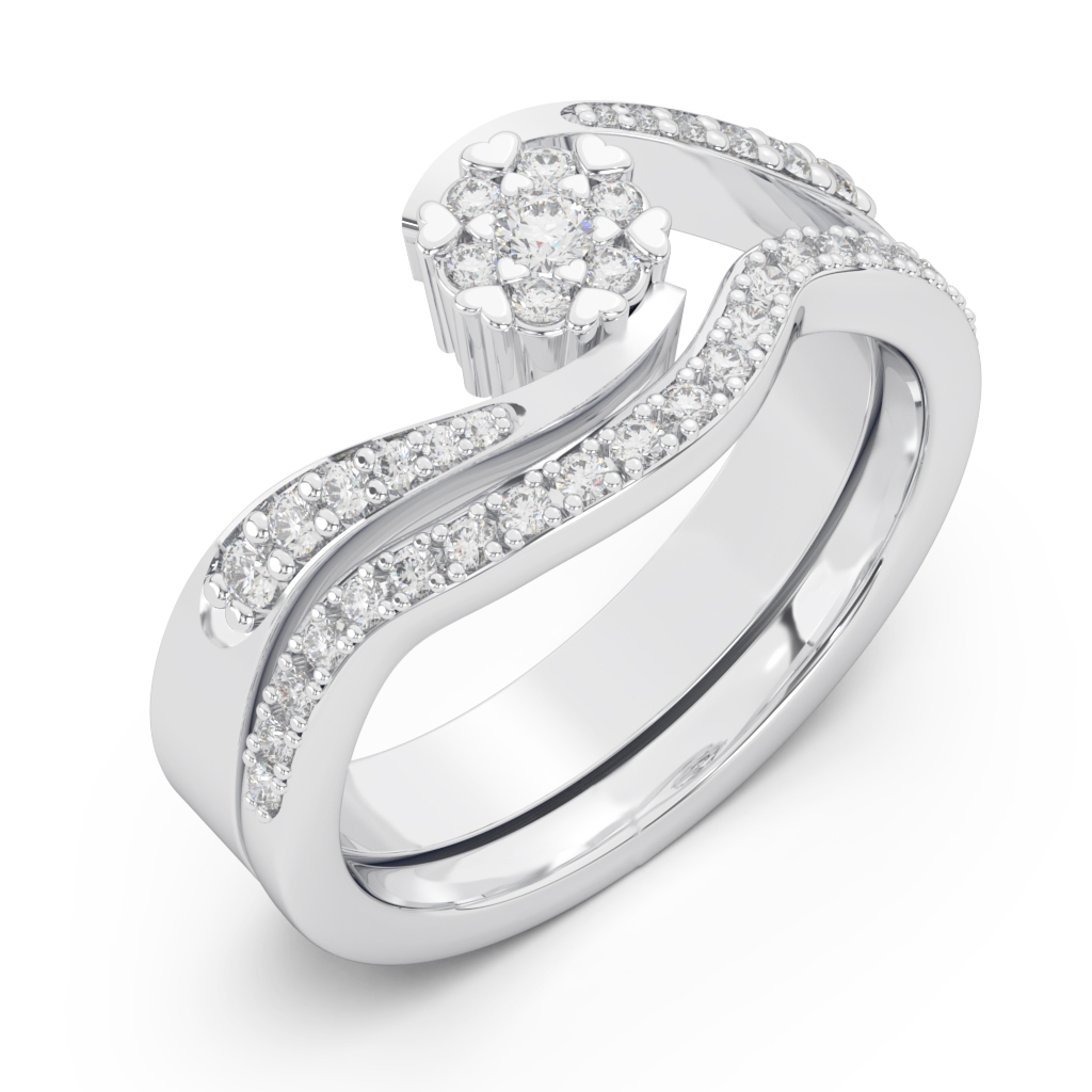 Verenički prsten od belog zlata neobičnog dizajna i oblika, optočen dijamantima. Svaki kamen je ručno ugrađen posebnom, ukrasnom tehnikom fasovanja, a centralni dijamant okružen sitnijim, blistavim brilijantima, učiniće da ovaj prsten blista na ruci Vaše izabranice. Po želji, možete da odaberete boju zlata, kao i karakteristike dijamanta, a nudimo Vam i mogućnost konfigurisanja svih elemenata kako bi verenički prsten bio upravo onakav kakav ste zamislili. Zlatara Andrejević Vam nudi sigurnu online kupovinu kao i mogućnost video prezentacije proizvoda.