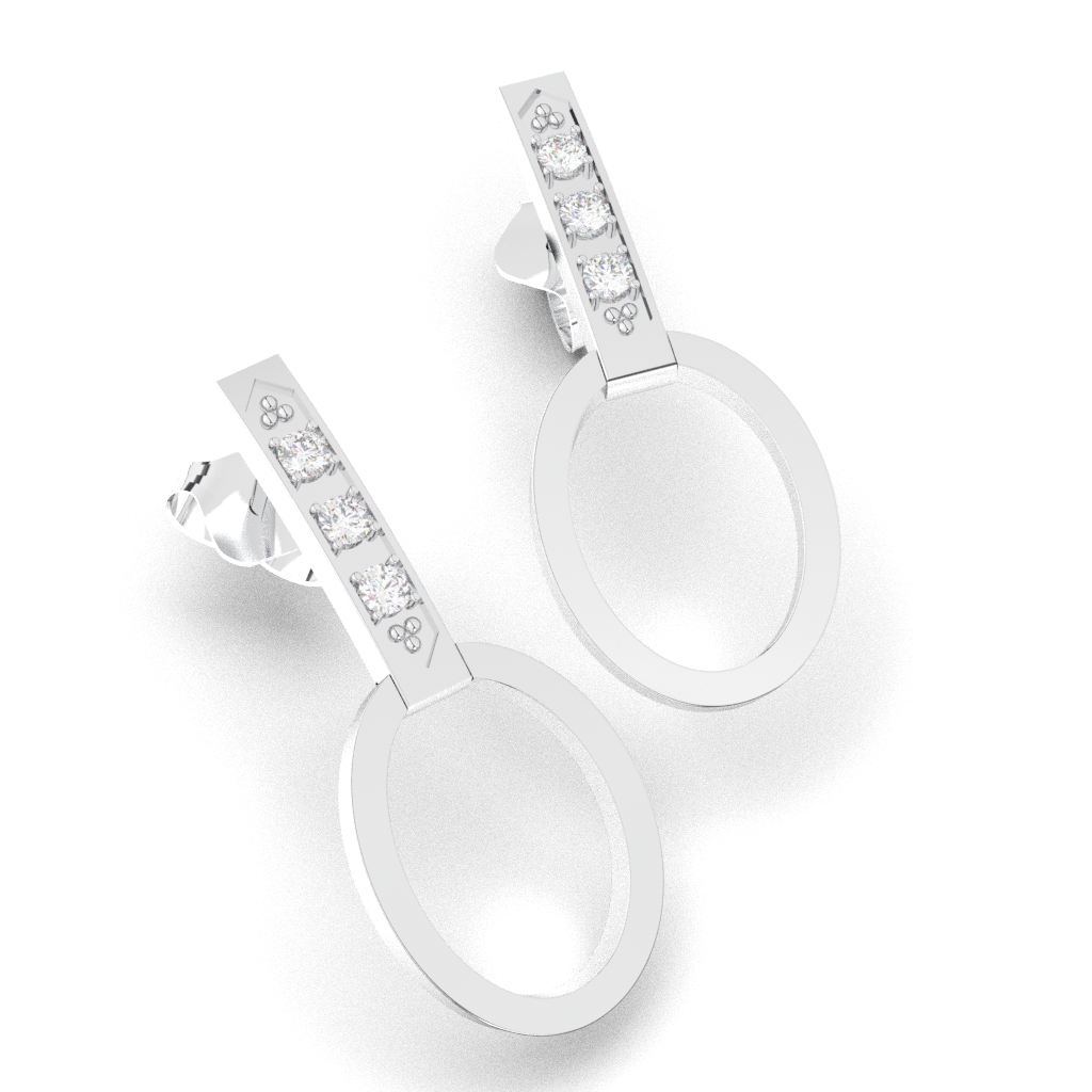 Zlatne viseće minđuše kače se na uho uz pomoć šrafića i predstavljaju elegantan dodatak svakoj ličnoj kolekciji nakita. Nastale su kombinovanjem kratke zlatne niti sa dijamantima i zlatne elipse. Elipsa može biti u boji zlata koju kupac odabere, što će učiniti ovaj komad još zanimljivijim.
