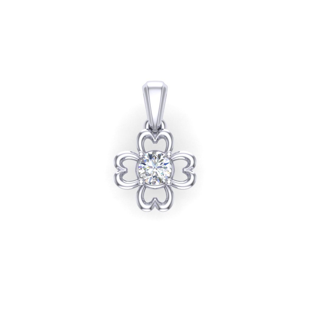 Privezak u obliku deteline sa četiri lista krasi i prirodan kamen vrhunske čistoće. Listovi su srcolikog oblika, šuplje unutrašnjosti sve do kamena. Privezak malih dimenzija i jednostavnih linija.