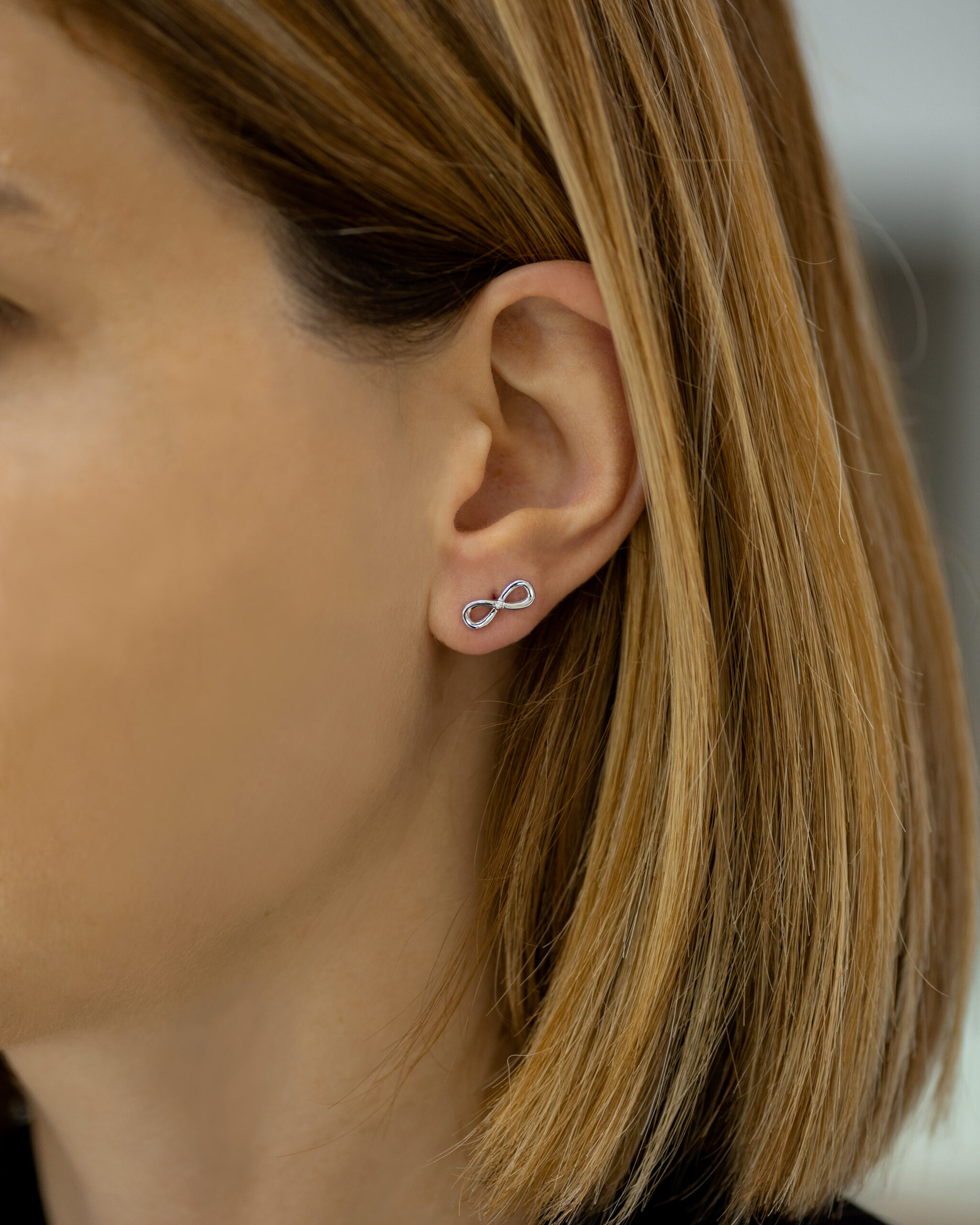 Minđuše od zlata ukrašene dijamantima u obliku simbola koji predstavlja večnost. Dijamant je smešten u samu sredinu minđuše, a klasični šraf čini ih sigurnim za nošenje. U zlatari Andrejević, nudimo Vam mogućnost da sami izaberete karatažu, čistoću i boju dijamanata, kao i boju zlata, kako biste bili sigurni da će krajnji rezultat biti upravo minđuše kakve ste želeli.