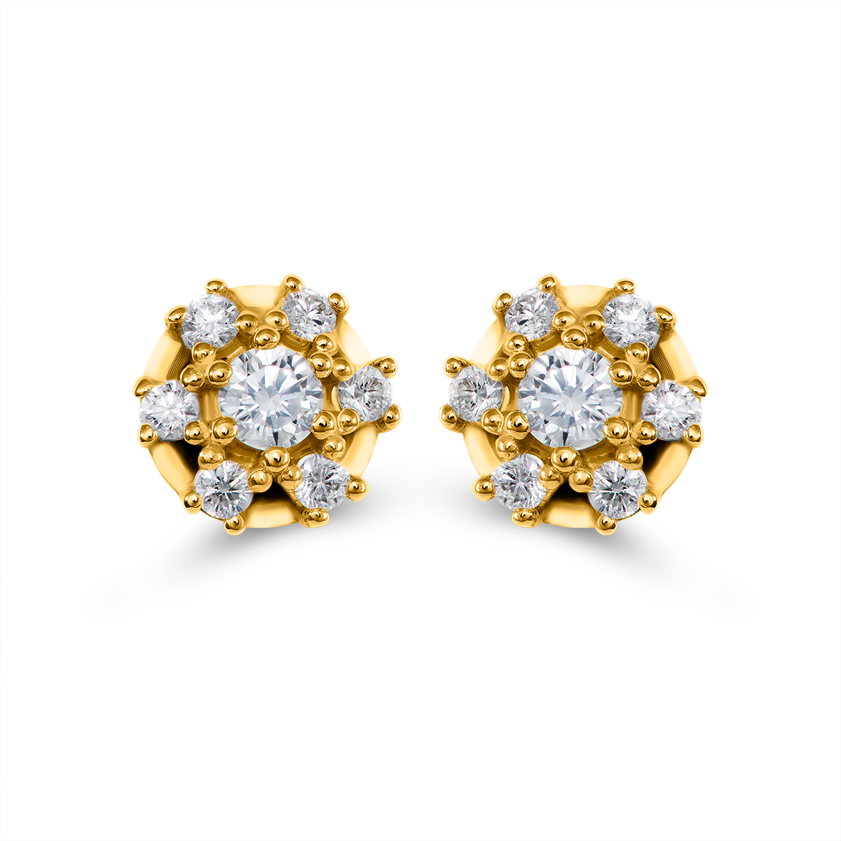 Minđuše u obliku cvetića napravljene od najkvalitetnijeg zlata i optočene blistavim dijamantima. Ove zlatne minđuše imaju jednostavan oblik i pričvršćuju se klasičnim šrafićima. U zlatari Andrejević, nudimo Vam mogućnost da sami izaberete karatažu, čistoću i boju dijamanata, kao i boju zlata, kako biste bili sigurni da će krajnji rezultat biti upravo minđuše kakve ste želeli.