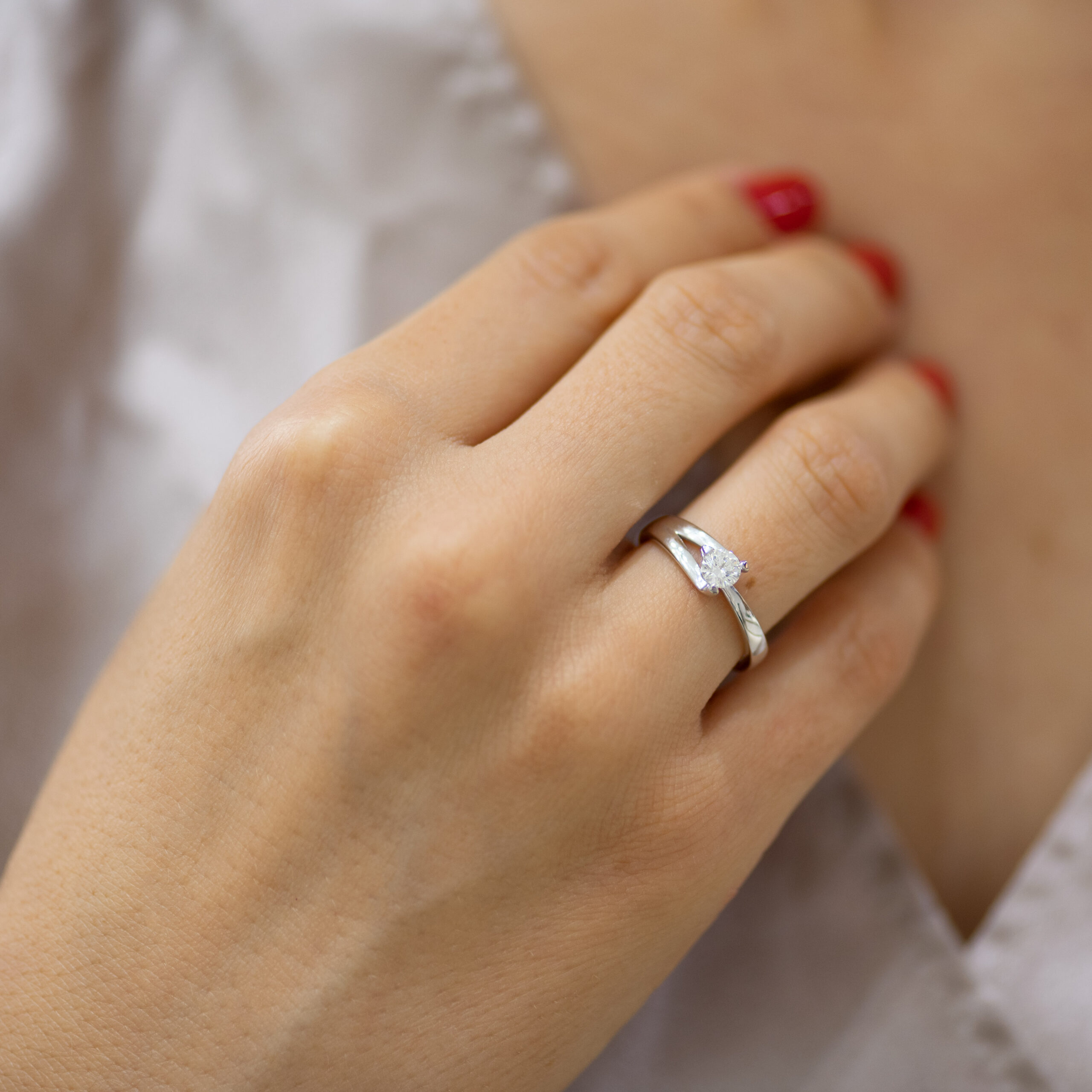 Dijamantski prsten neobičnog i modernog dizajna koji krasi predivno izbrušen dijamant. Kružnica prstena je prekinuta i krak sa jedne strane savršeno se uklapa između dva kraka sa druge strane. Umesto klasičnih držača, tri kraka se izvijaju kako bi držali kamen, a ivice su im ravno brušene tako da lepše reflektuju svetlo. GIA sertifikat koji prati ovaj prirodni dijamant garantuje tačnost navedenih podataka. Za bogati efekat svetlosti su zaslužne idealne proporcije dijamanta i perfektna obrada prstena. Sam prsten može biti napravljen od belog, roze ili žutog zlata, finoće 14k ili 18k. U zlatari Andrejević Vam nudimo mogućnost da birate veličinu i sve ostale karakteristike dijamanta kako biste bili sigurni da će krajnji rezultat biti upravo dijamantski prsten kakav ste želeli.
