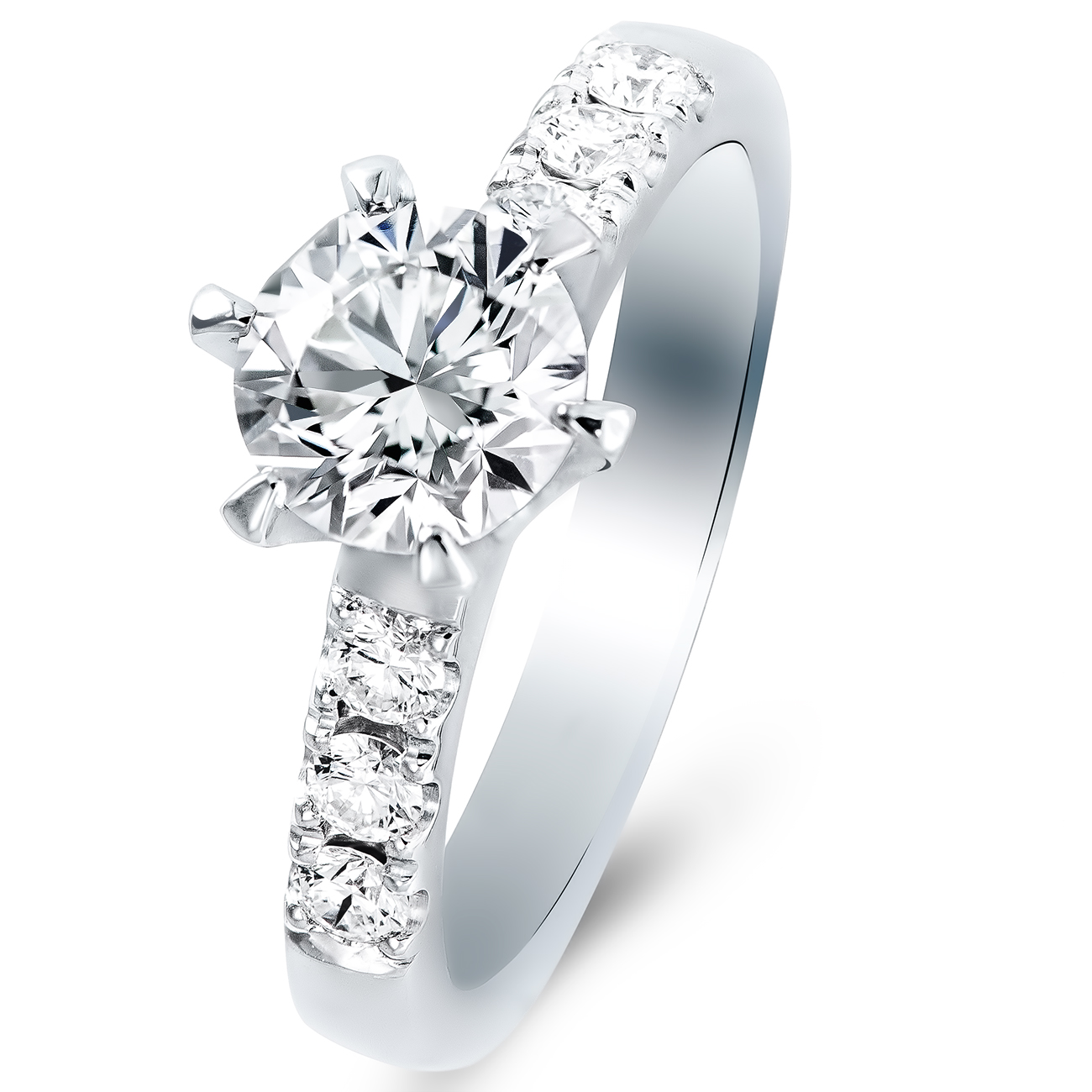 Dijamantski prsten elegantnog, klasičnog dizajna. Model soliter sa velikim centralnim brilijantom i sitnim dijamantima na šini nikad ne izlazi iz mode. Za blistavo prelamanje svetlosti je zadužen perfektno brušen dijamant (excelent cut) koji ima GIA sertifikat.