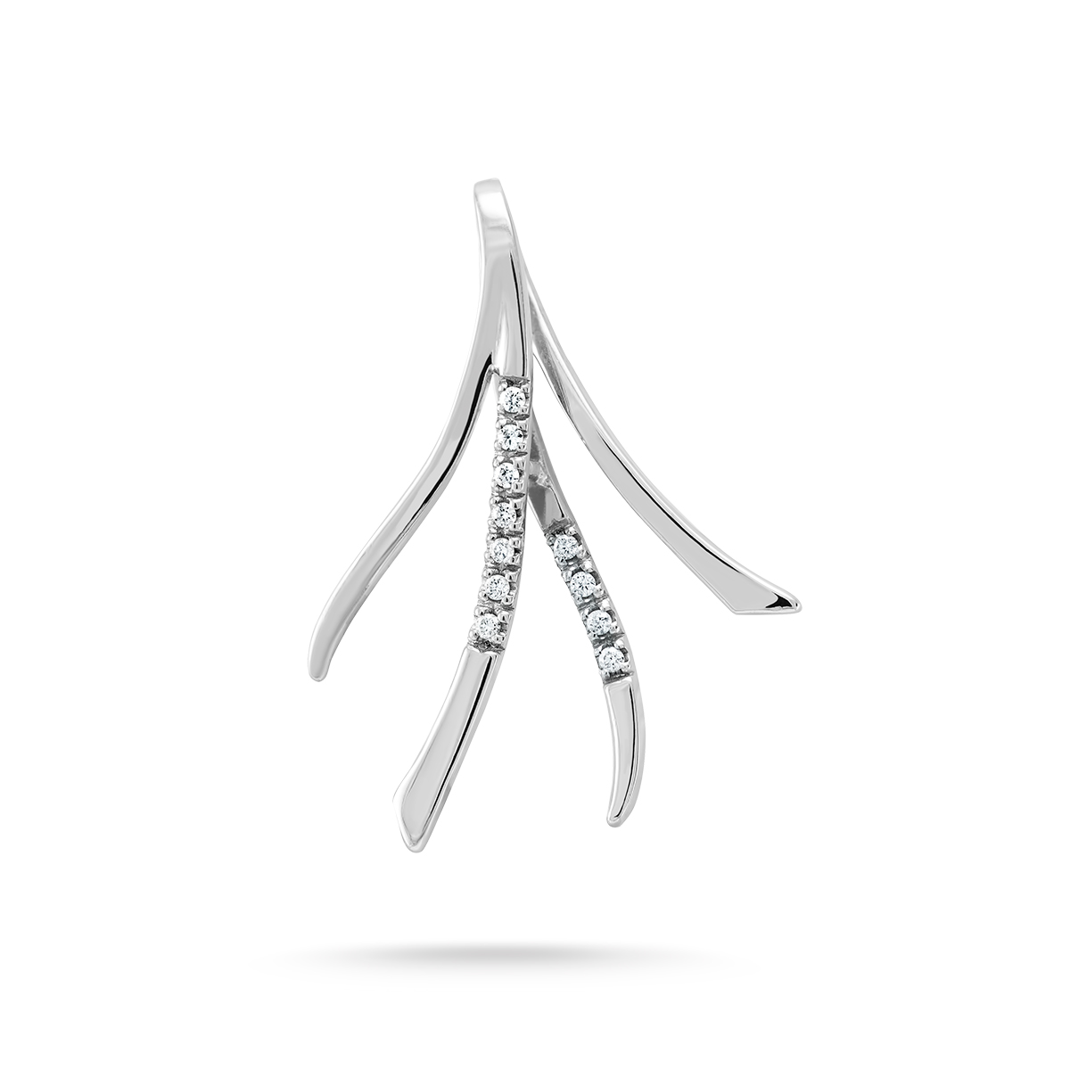 Privezak od zlata u obliku stilizovane grančice oblih vrhova, ukrašen sa čak 11 brilijanata. Napravljen je od najkvalitetnijeg 14-karatnog zlata i nema klasičnu alku, već se lančić provlači kroz sam privezak, čineći ga tako još primetnijim na vratu. Brilijanti imaju po četiri držača i smešteni su na dve unutrašnje grančice priveska. Zlatni privesci zlatare Andrejević mogu biti izrađeni u bilo kojoj od 3 boje zlata: beloj, roze, ili žutoj, a kombinaciju boja zlata možete sami da odaberete. Uz to, u zlatari Andrejević, nudimo Vam mogućnost da sami izaberete karatažu, čistoću i boju dijamanta kako biste bili sigurni da će privesci biti upravo onakvi kakve ste želeli.