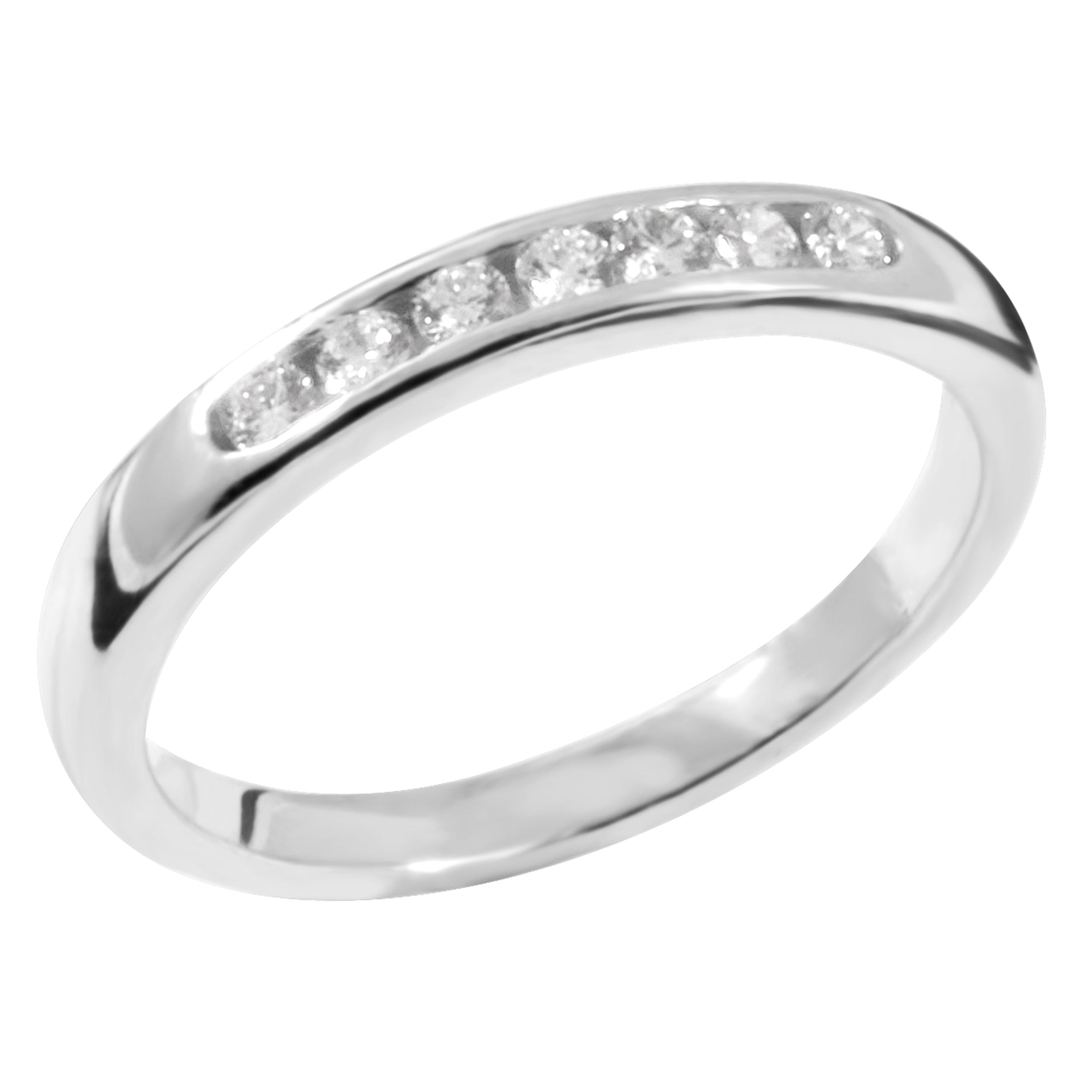 Niz od sedam malih dijamanata utisnut je u prednji deo prstena. Ovim nije istaknuto samo drago kamenje, već se prsten posmatra kao celina.