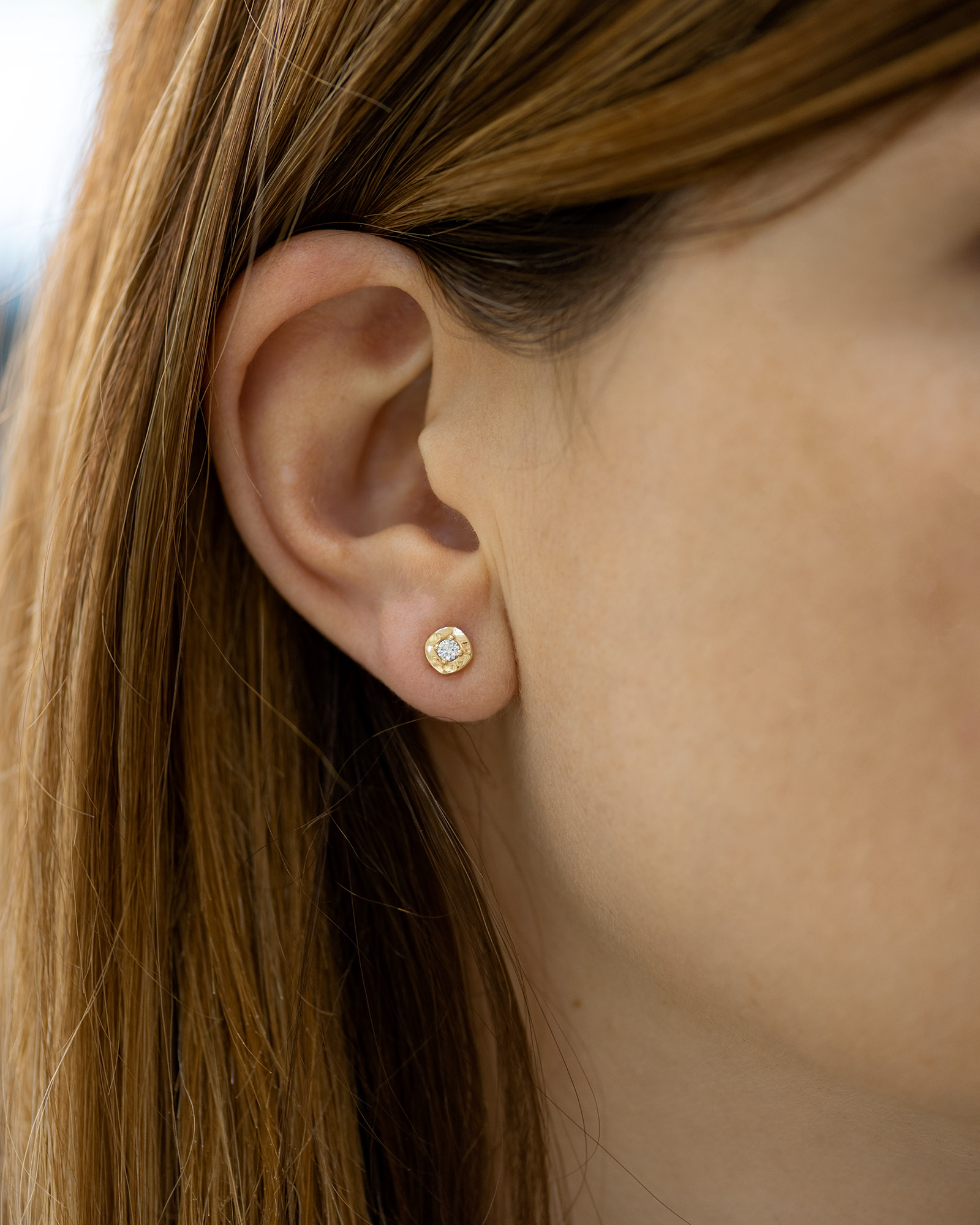 Minđuše od zlata u obliku kruga koje krasi dijamant postavljen u samu sredinu. Ove zlatne minđuše su klasičnog dizajna i pričvršćuju se na šrafić. Krug je sačinjen od četiri dela koji imaju blage talase i koji se savršeno stapaju jedan u drugi. U zlatari Andrejević, nudimo Vam mogućnost da sami izaberete karatažu, čistoću i boju dijamanata, kao i boju zlata, kako biste bili sigurni da će krajnji rezultat biti upravo minđuše kakve ste želeli.