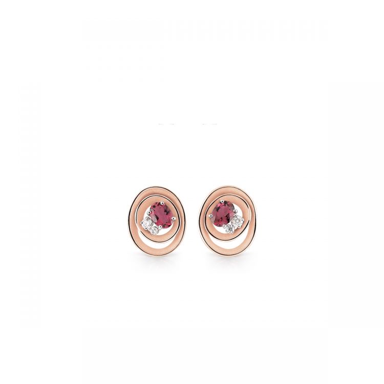 Zlatne minđuše sa dijamantima i turmalinima koje dolaze iz Annamaria Cammilli radionice. Izrađene su od najkvalitetnijeg 18K roze zlata i kače se na klasični šraf.