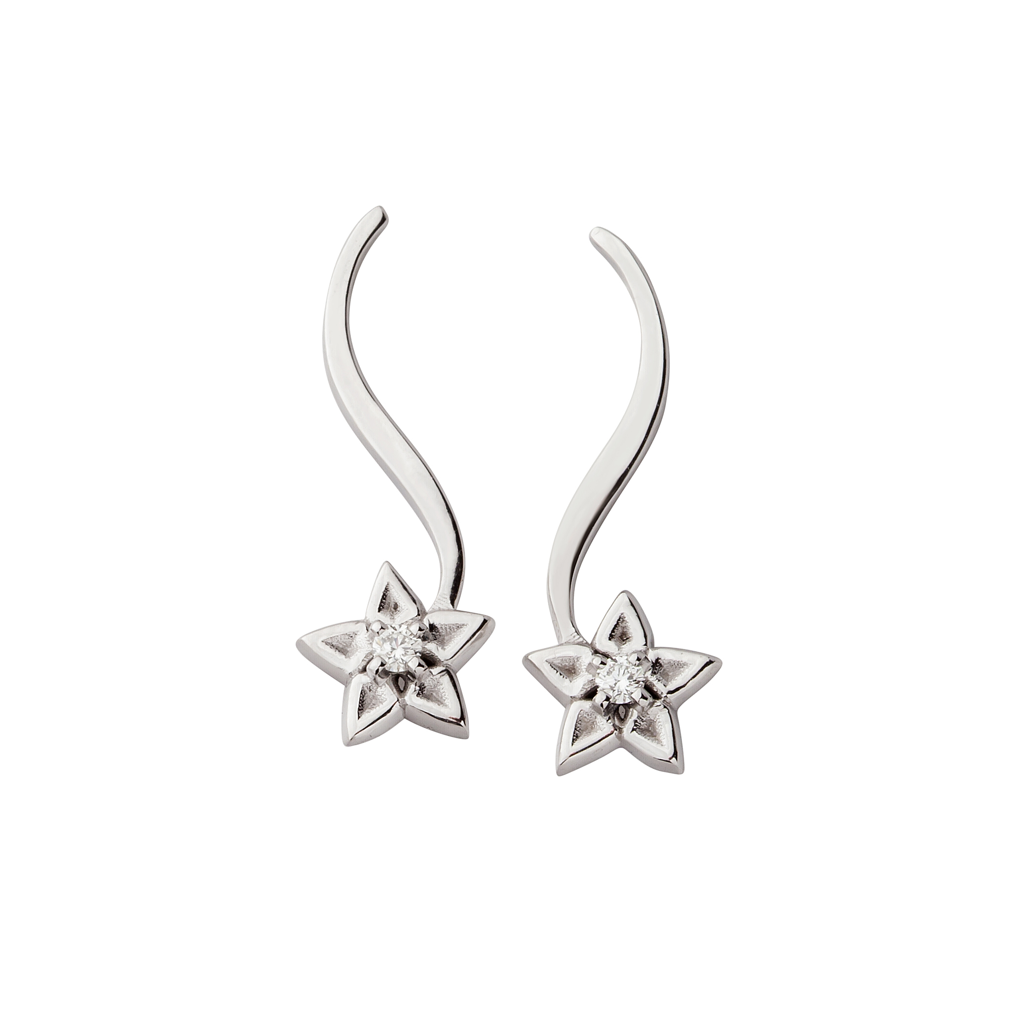 Minđuše od zlata elegantnog dizajna, sa ukrasom u obliku cveta. Zlatna, vijugava nit na jednom kraju ima klasičnu iglicu, dok se na drugom kraju nalazi cvetić sa pet latica, u čijem je središtu brilijant. U zlatari Andrejević, moguća je i izrada nakita po Vašoj želji, kao i mogućnost konfigurisanja, pa naše zlatne minđuše mogu biti izrađene u bilo kojoj od 3 boje zlata: beloj, roze, ili žutoj. Uz to, u zlatari Andrejević, nudimo Vam mogućnost da sami izaberete karatažu, čistoću i boju dijamanta, kako biste bili sigurni da će minđuše biti upravo onakve kakve ste želeli.