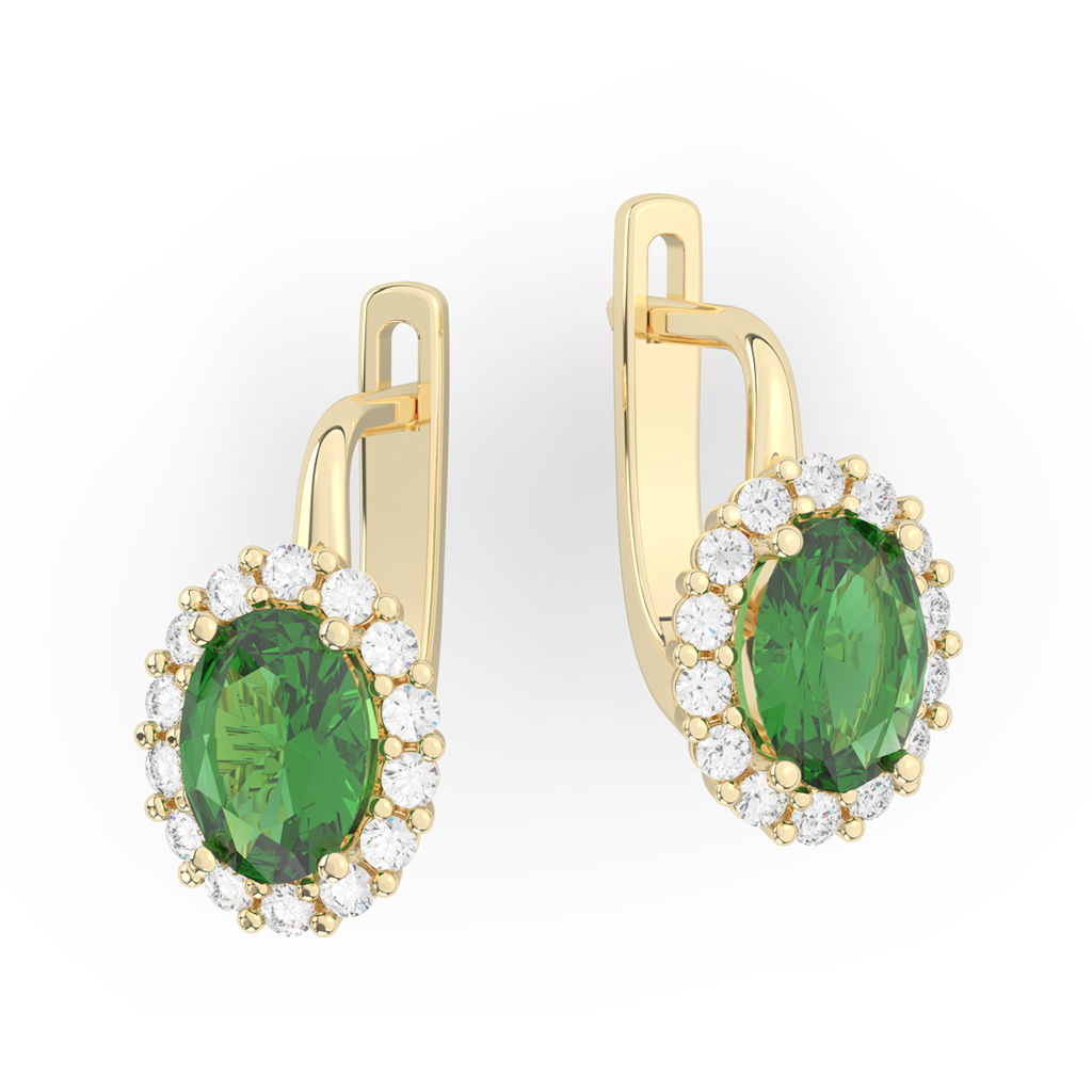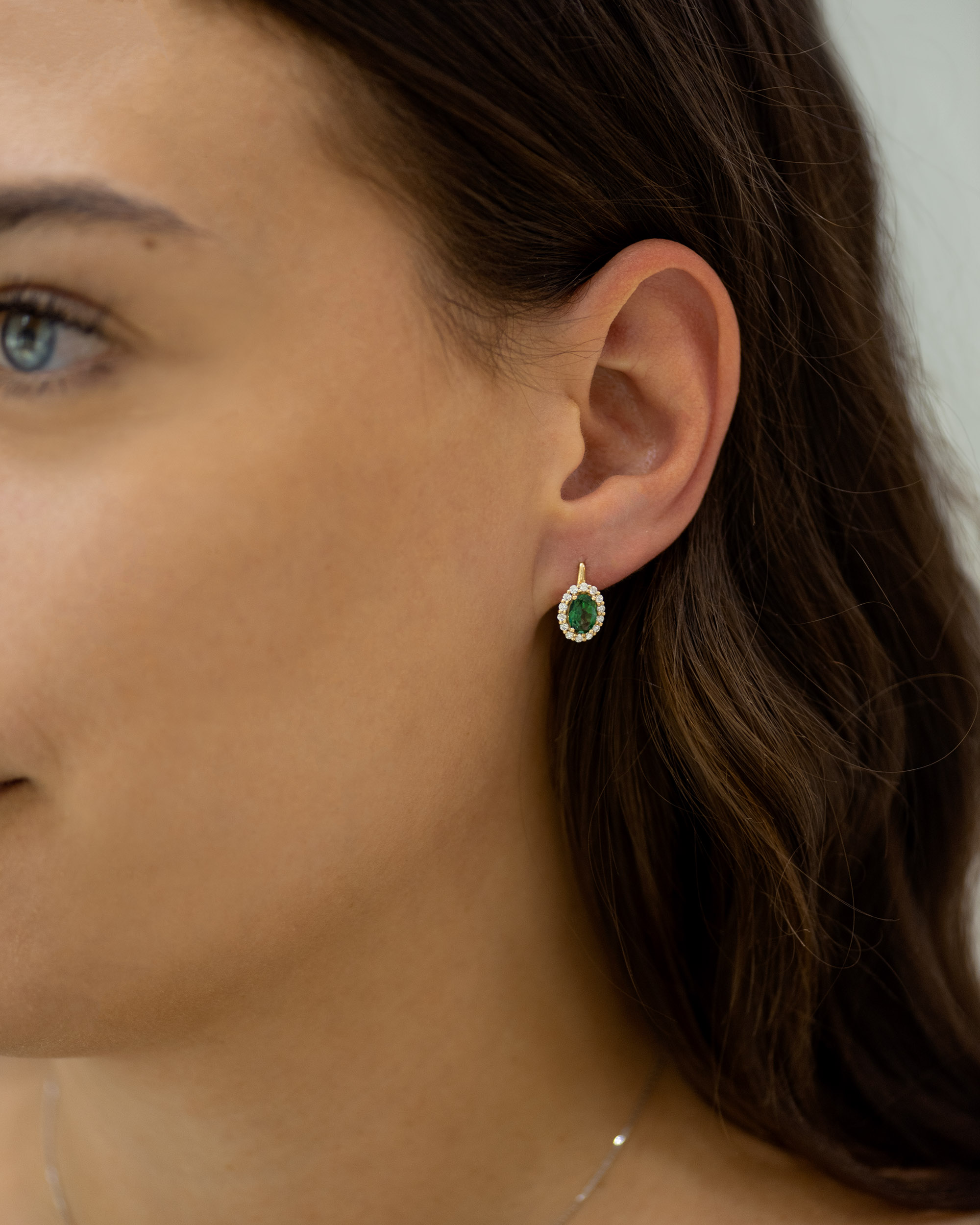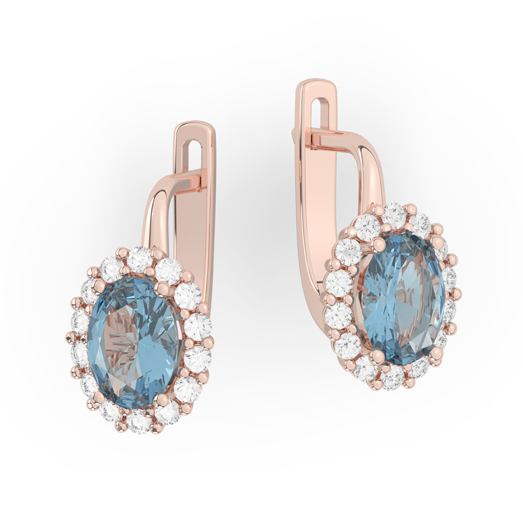 Minđuše uvek popularnog dizajna elegantne su i prefinjene. Njihovoj lepoti najviše doprinosi odabir ukrasa, odnosno kombinovanje dve vrste dragog kamenja. Centralni kamen je topaz ovalnog oblika i može biti u jednoj od pet boja. Bez obzira da li izabrali tamno plavu, svetlo plavu, crvenu, zelenu ili ljubičastu, možete biti sigurni da će se savršeno uklopiti sa dijamantima koji će topaz okružiti. Osnova minđuša po Vašem izboru može biti od belog, žutog ili roze zlata.