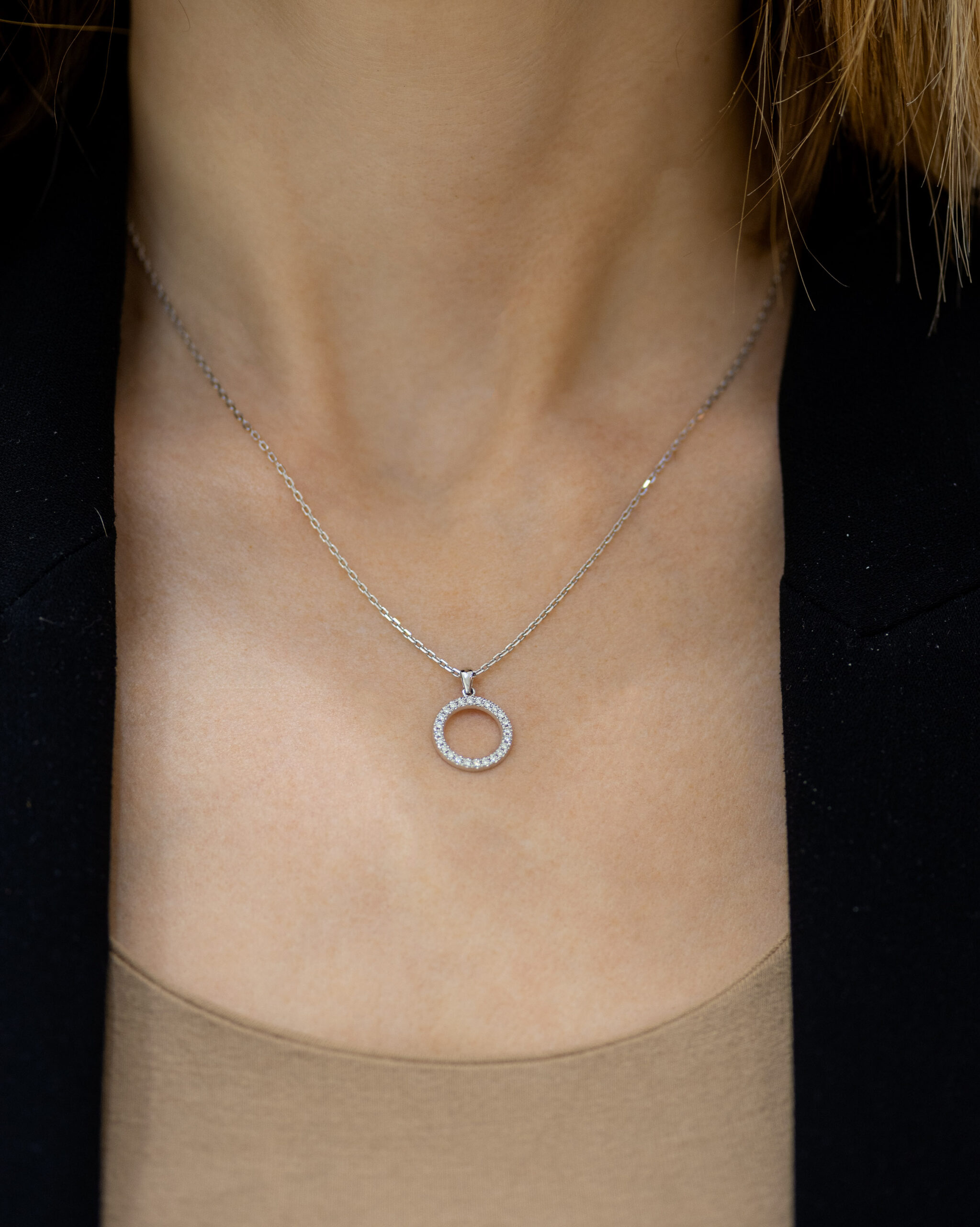 Privezak u obliku kruga napravljen od najkvalitetnijeg zlata optočenog dijamantima. Privezak krase čak 24 dijamanta izuzetnog sjaja, a na samom vrhu se nalazi klasična alka. Zlatni privesci zlatare Andrejević mogu biti izrađeni u bilo kojoj od 3 boje zlata: beloj, roze, ili žutoj. Uz to, u zlatari Andrejević, nudimo Vam mogućnost da sami izaberete karatažu, čistoću i boju dijamanta kako biste bili sigurni da će privesci biti upravo onakvi kakve ste želeli.
