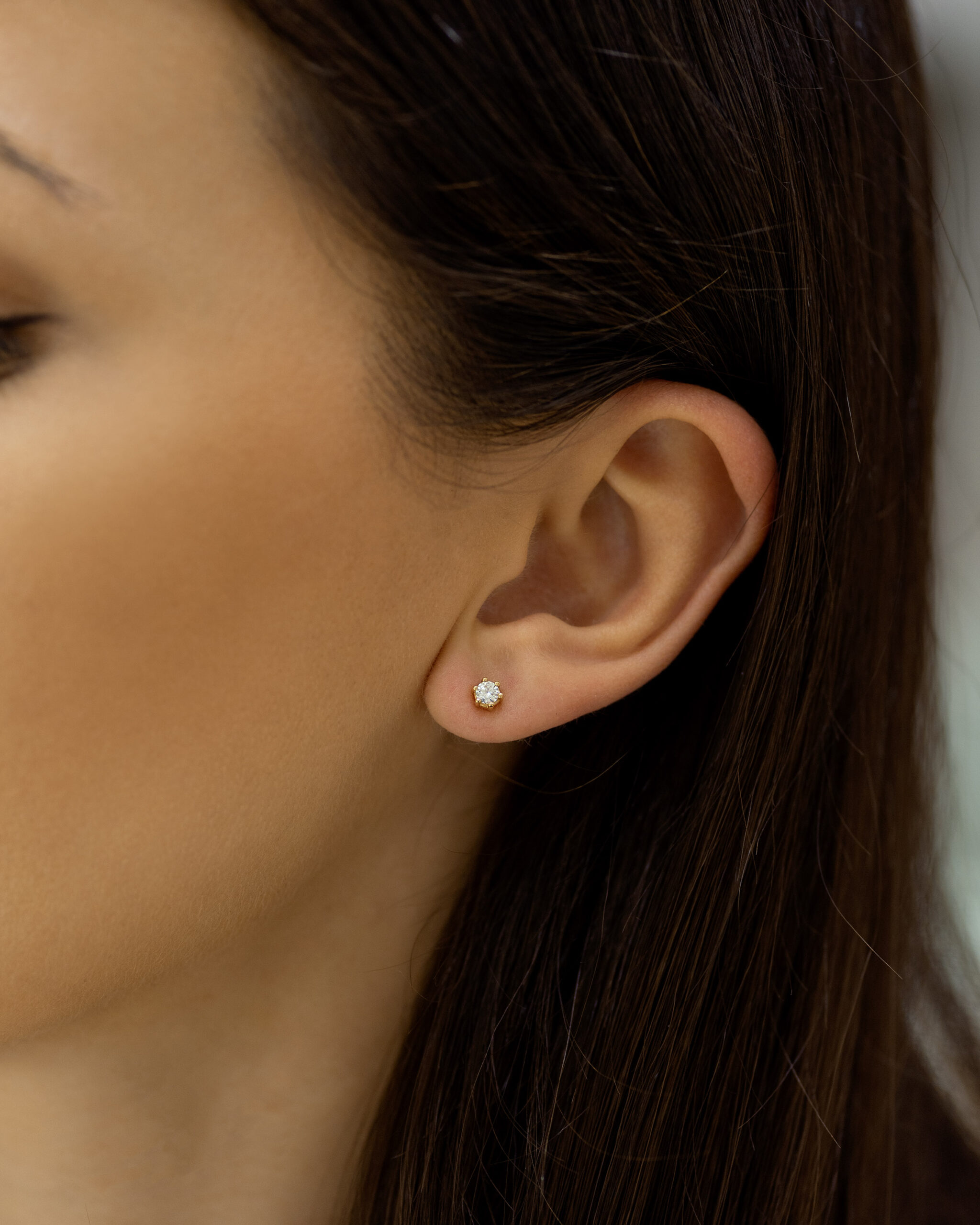 Zlatne minđuše klasičnog dizajna koje krase dijamanti. Minđuše su napravljene od najkvalitetnijeg zlata i pričvršćuju se šrafićima. U zlatari Andrejević, nudimo Vam mogućnost da sami izaberete karatažu, čistoću i boju dijamanta, kao i boju zlata, kako biste bili sigurni da će krajnji rezultat biti upravo minđuše kakve ste želeli.