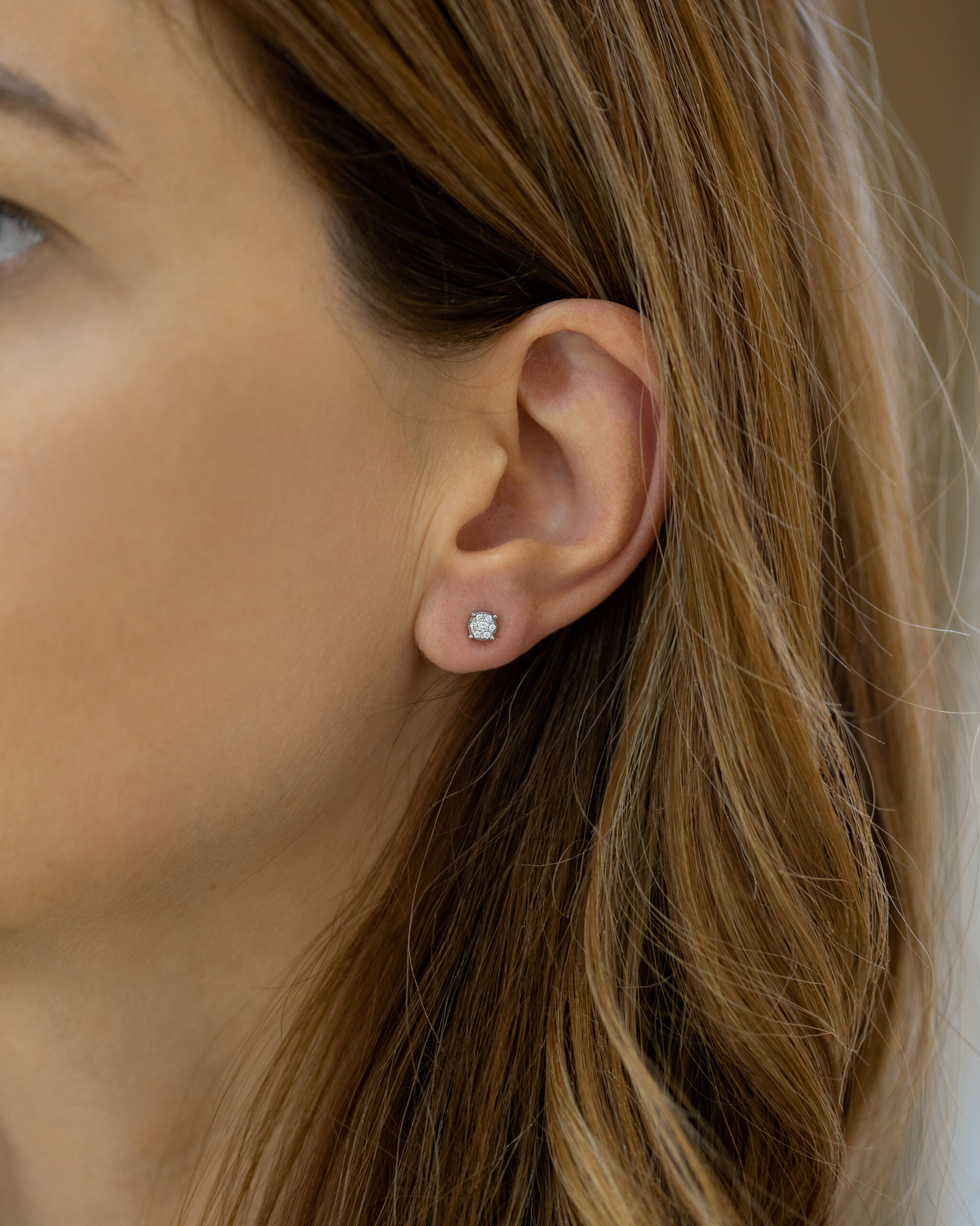 Minđuše od zlata klasičnog dizajna optočene dijamantima. Minđuše su napravljene od najkvalitetnijeg zlata i pričvršćuju se šrafićima, dok je čak 14 dijamanata ufasovano u okruglu zlatnu osnovu. Dijamanti su kreativno ufasovani tako da daju utisak da su u pitanju dijamanti znatno veće karataže. U zlatari Andrejević, nudimo Vam mogućnost da sami izaberete karatažu, čistoću i boju dijamanata, kao i boju zlata, kako biste bili sigurni da će krajnji rezultat biti upravo minđuše kakve ste želeli.