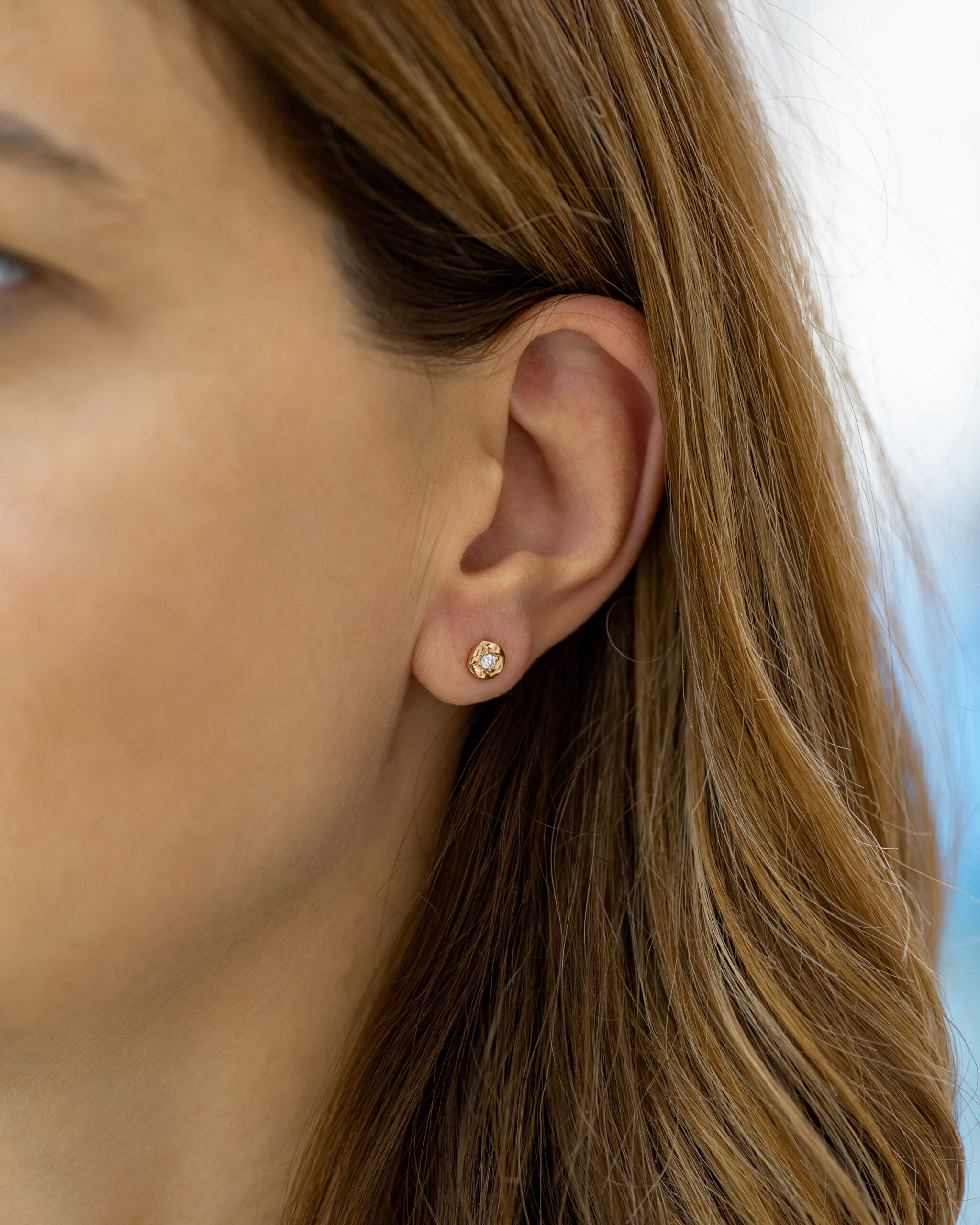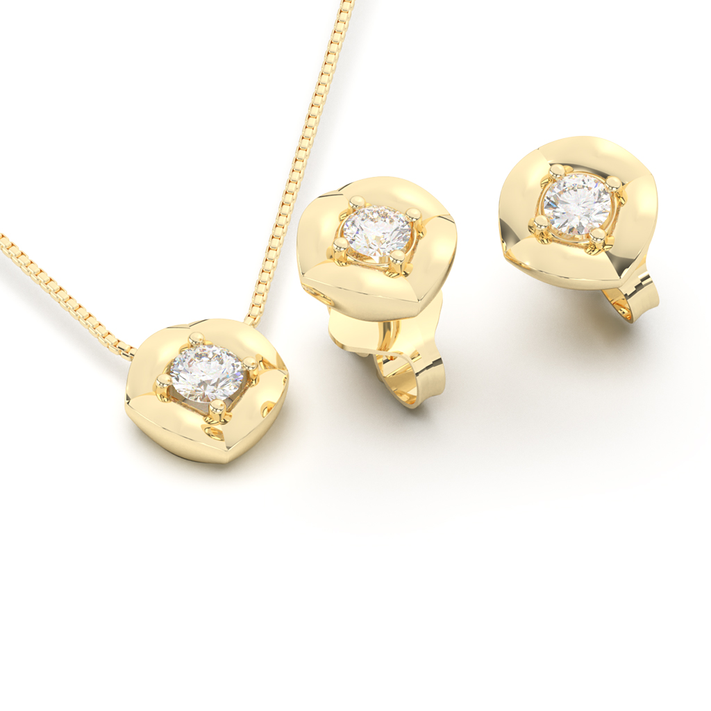 Minđuše od zlata u obliku kruga koje krasi dijamant postavljen u samu sredinu. Ove zlatne minđuše su klasičnog dizajna i pričvršćuju se na šrafić. Krug je sačinjen od četiri dela koji imaju blage talase i koji se savršeno stapaju jedan u drugi. U zlatari Andrejević, nudimo Vam mogućnost da sami izaberete karatažu, čistoću i boju dijamanata, kao i boju zlata, kako biste bili sigurni da će krajnji rezultat biti upravo minđuše kakve ste želeli.