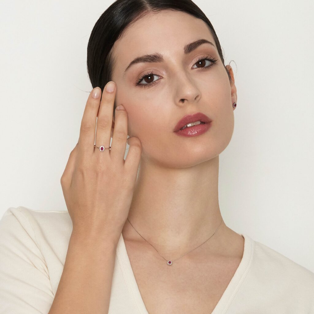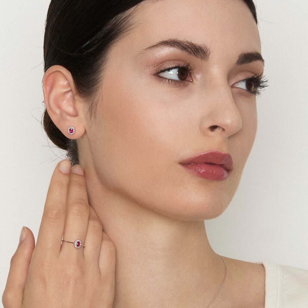 Minđuše od belog zlata sa rubinom i dijamantima predstavljaju sofisticiran i elegantan komad nakita. Rubin, sa svojom dubokom crvenom bojom, simbolizuje strast i ljubav, dok dijamanti dodaju briljantnu svetlost i luksuz. Beli okvir od 18 zlata naglašava lepotu dragulja, stvarajući savršen spoj moderne prefinjenosti i klasične elegancije. Idealne su za posebne prilike ili kao luksuzan dodatak svakodnevnom stilu.