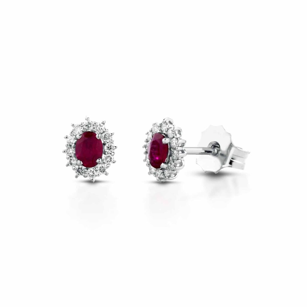 Minđuše klasičnog dizajna sa rubinima i brilijantima. Ove zlatne minđuše su elegantne i diskretne, a pričvršćuju se na klasični šrafić.