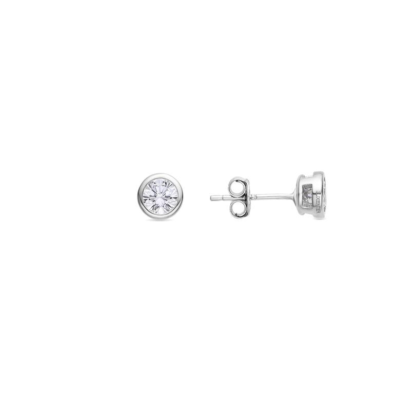 Klasične srebrne Luxenter minđuše na iglicu. Imaju cirkon srednje veličine i kopčaju se na šraf.