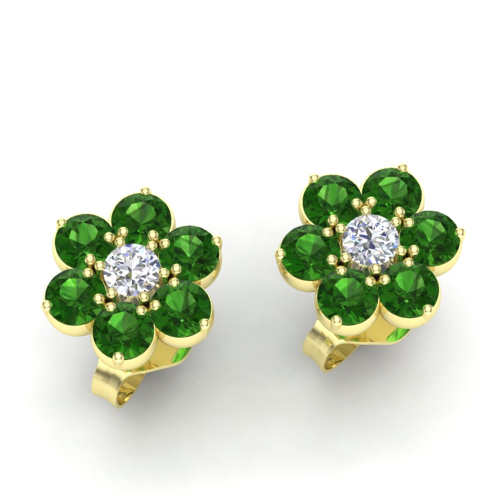 Minđuše od zlata u obliku cveta ukrašene brilijantima i topazima. Minđuše su kružnog oblika, u sredinu su postavljeni brilijanti koji su okruženi venčićima zagasitih topaza. Ove zlatne minđuše su manjih dimenzija i imaju klasični šraf. U zlatari Andrejević, nudimo Vam mogućnost da sami izaberete karatažu, čistoću i boju dijamanta, kao i boju zlata, kako biste bili sigurni da će krajnji rezultat biti upravo minđuše kakve ste želeli.