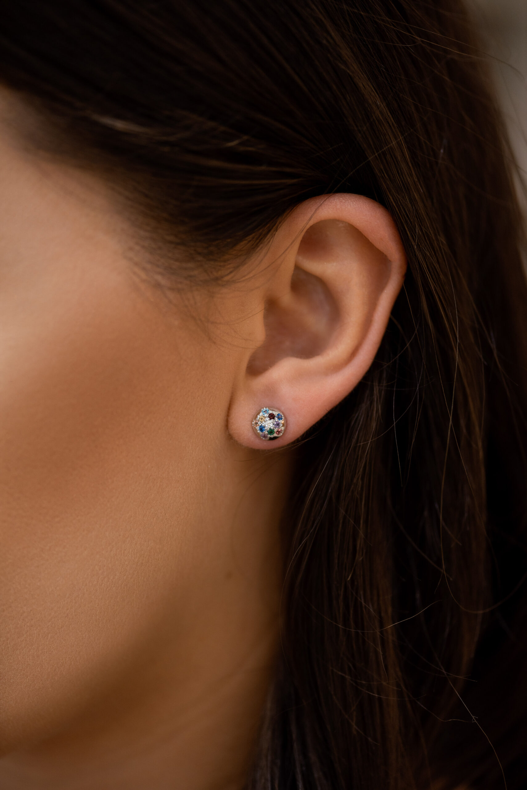 Minđuše od zlata iz kolekcije Tutti Frutti u obliku kuglica koje krasi raznobojno drago kamenje. Ove zlatne minđuše su manjih dimenzija i pričvršćuju se šrafićem. U zlatari Andrejević, nudimo Vam mogućnost da sami izaberete karatažu, čistoću i boju dijamanata, kao i boju zlata, kako biste bili sigurni da će krajnji rezultat biti upravo minđuše kakve ste želeli.