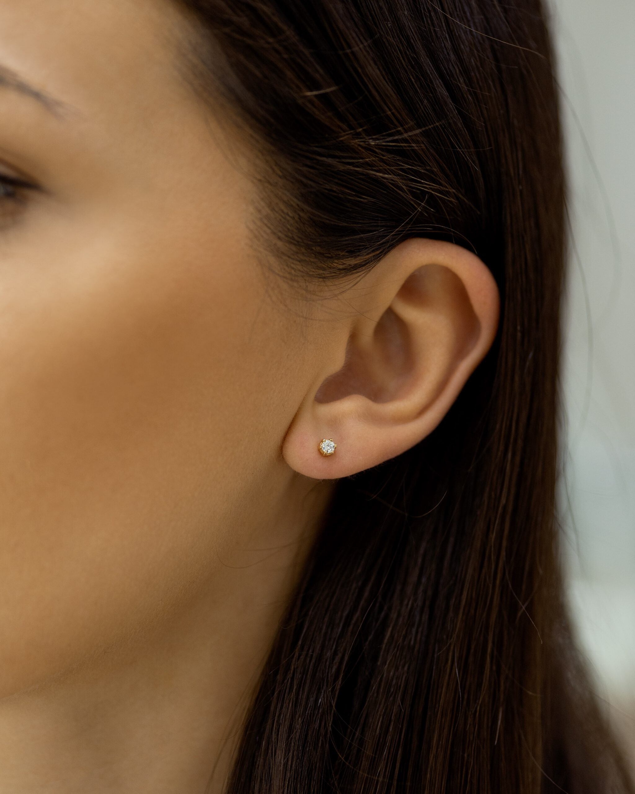 Zlatne minđuše klasičnog dizajna koje krase dijamanti. Minđuše su napravljene od zlata i pričvršćuju se šrafićima. U zlatari Andrejević, nudimo Vam mogućnost da sami izaberete karatažu, čistoću i boju dijamanta, kao i boju zlata, kako biste bili sigurni da će krajnji rezultat biti upravo minđuše kakve ste želeli.