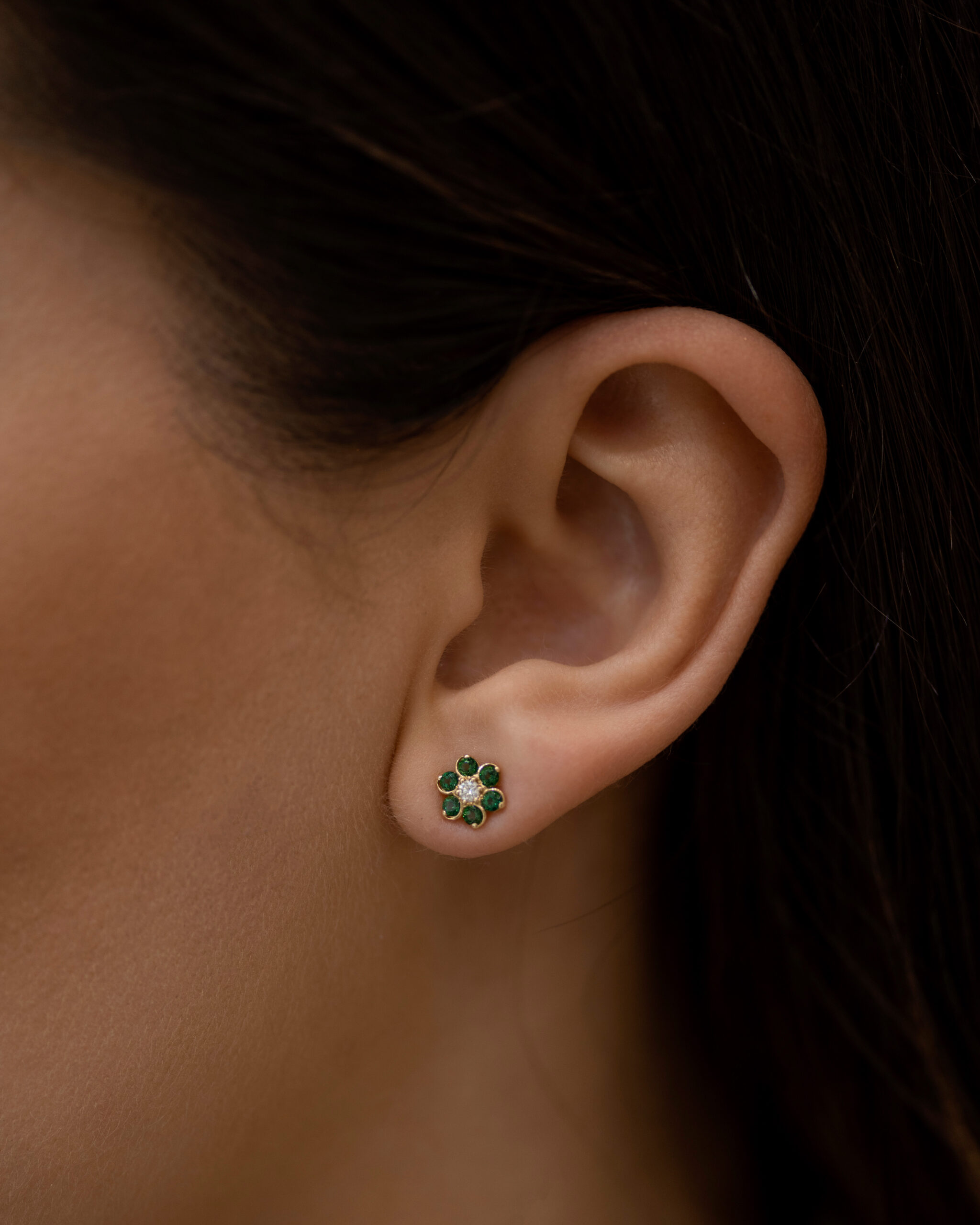 Minđuše od zlata u obliku cvetića sa zagasitim topazima i blistavim brilijantima. Ove zlatne minđuše se pričvršćuju klasičnim šrafićima dok su topazi postavljeni pod uglom kako bi dali dodatnu dubinu i lepši sjaj dragom kamenju. U zlatari Andrejević, nudimo Vam mogućnost da sami izaberete karatažu, čistoću i boju dijamanta, kao i boju zlata, kako biste bili sigurni da će krajnji rezultat biti upravo minđuše kakve ste želeli.