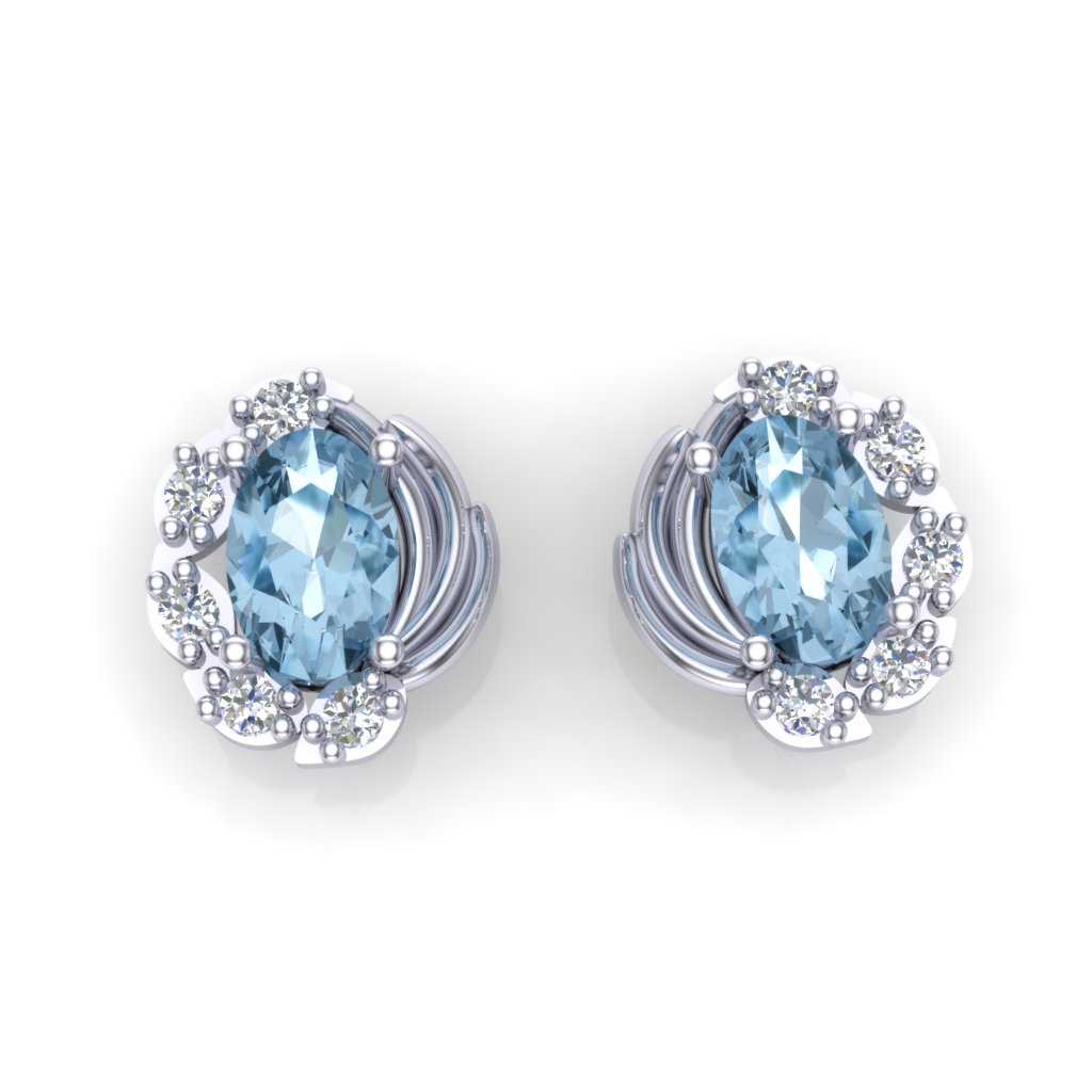 Minđuše od zlata neobičnog oblika ukrašene topazima i brilijantima. Topaz ovalnog oblika i svetloplave boje, smešten je u zlatnu osnovu koja se sastoji iz dva dela: jednog koji je nalik kapljicama vode u koje su ufasovani brilijanti, i drugog koji liči na prepletene grančice. Kače se na klasični šraf. U zlatari Andrejević, nudimo Vam mogućnost da sami izaberete karatažu, čistoću i boju dijamanta i drugog dragog kamenja, kao i boju zlata, kako biste bili sigurni da će krajnji rezultat biti upravo minđuše kakve ste želeli.