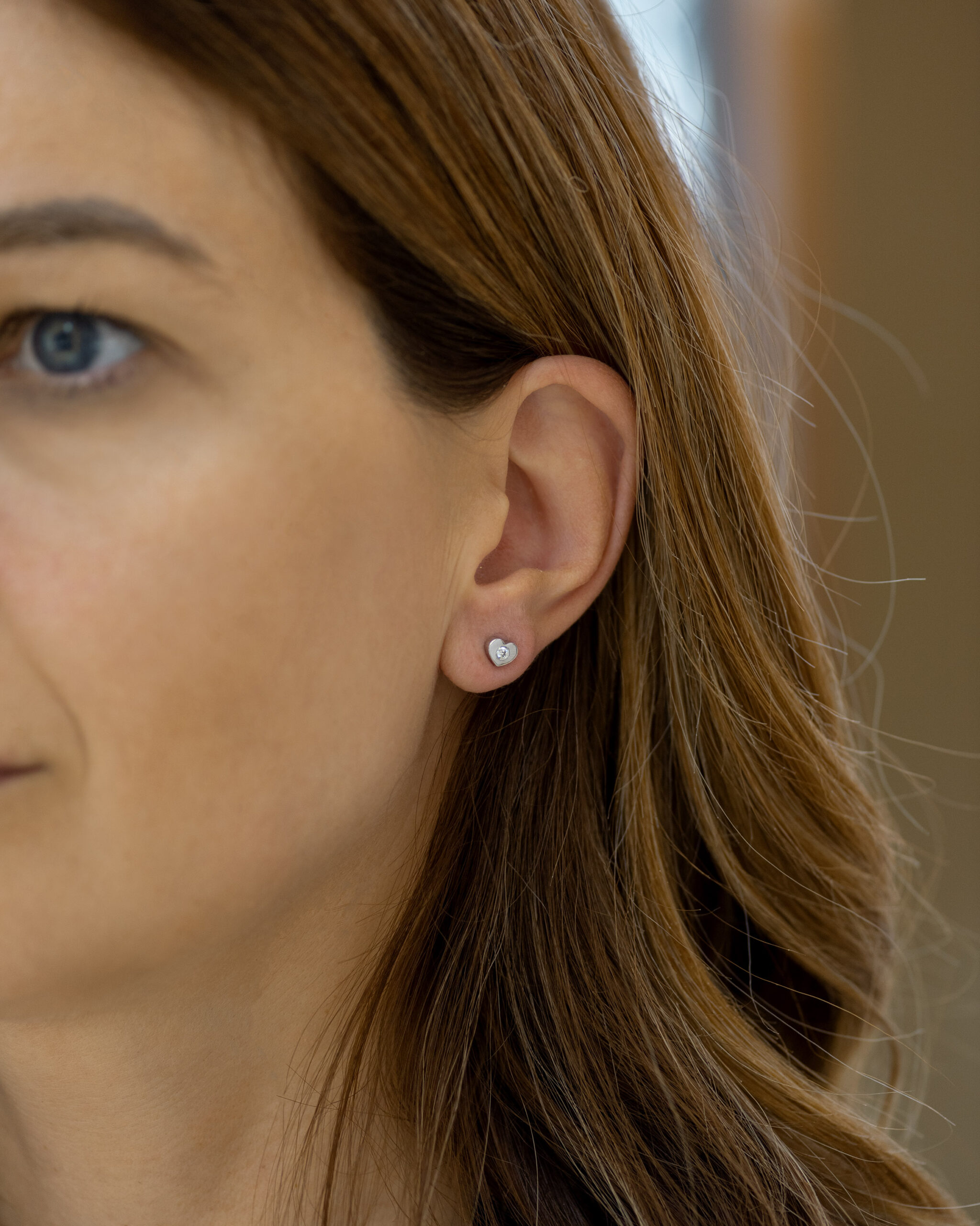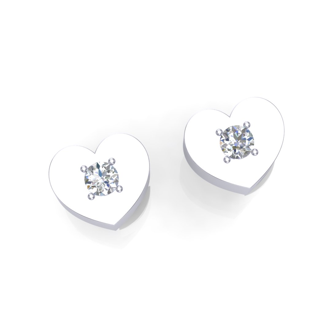 Minđuše od zlata u obliku srca koje krase brilijanti. Ove zlatne minđuše su savršeno simetrične i pričvršćuju se klasičnim šrafićima, dok je u sredinu svakog srca ufasovan po jedan blistavi brilijant. U zlatari Andrejević, nudimo Vam mogućnost da sami izaberete karatažu, čistoću i boju dijamanata, kao i boju zlata, kako biste bili sigurni da će krajnji rezultat biti upravo minđuše kakve ste želeli.