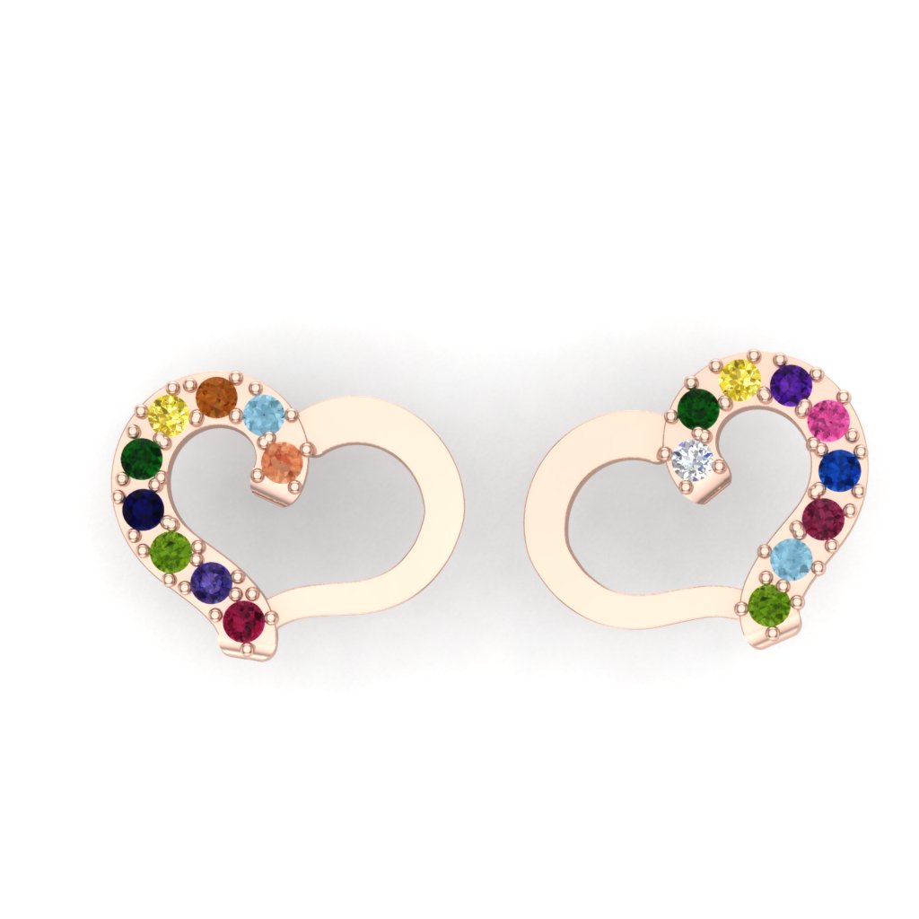 Minđuše od zlata sa obrisima srca iz čuvene kolekcije Tutti Frutti koje krasi raznobojno drago kamenje. Ove zlatne minđuše su blago asimetričnog oblika i pričvršćuju se klasičnim šrafićima. Sredina im je prazna, jedna polovima srca je od glatkog zlata, dok su u drugu ufasovani šareni dragulji, zaštitni znak Tutti Frutti kolekcije. U zlatari Andrejević, nudimo Vam mogućnost da sami izaberete karatažu, čistoću i boju dijamanata, kao i boju zlata, kako biste bili sigurni da će krajnji rezultat biti upravo minđuše kakve ste želeli.