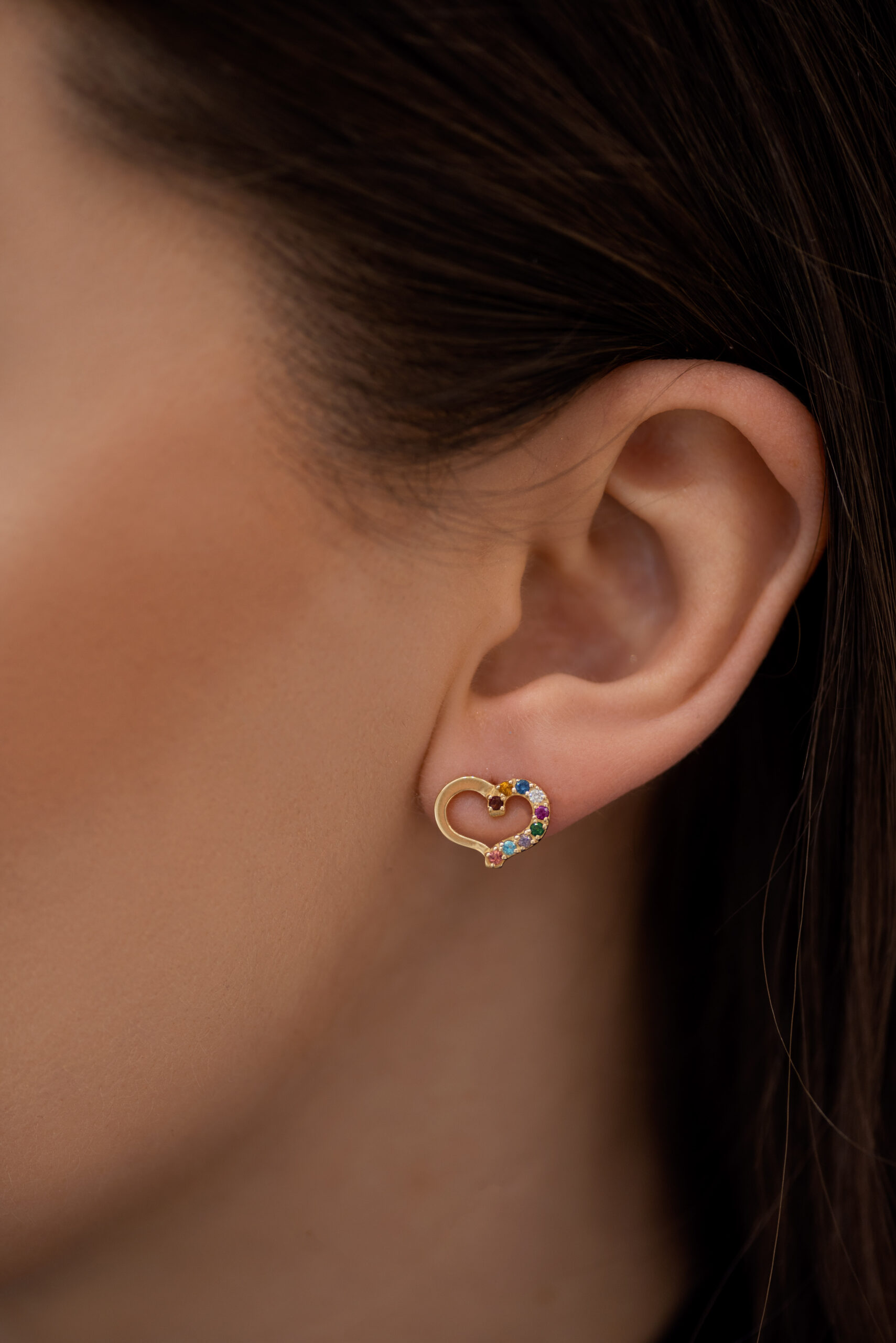 Nakit sa motivom srca bezvremeni je simbol ljubavi i nežnosti u gotovo svim kulturama sveta. Ove romantične i diskretne, ručno rađene zlatne minđuše u kombinaciji sa raznobojnim dragim kamenjem izuzetne čistoće i zagasitih boja, blistaće dok ih nosite i podsećati Vas na sve velike i male ljubavi u Vašem životu. Iako su manjih dimenzija, ove minđuše jasno će da iskažu silinu emocija koje simbolizuju. Zlatara Andrejević nudi Vam sigurnu online kupovinu, dostavu na kućnu adresu, kao i mogućnost video prezentacije proizvoda.