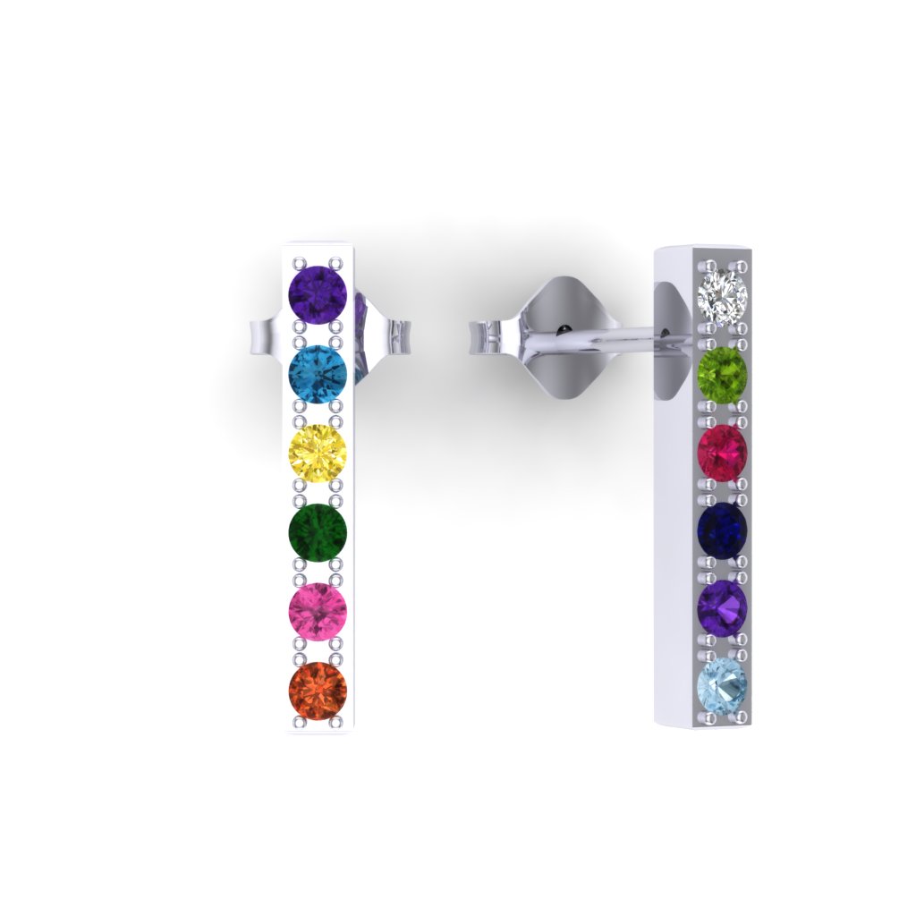 Minđuše od zlata iz poznate kolekcije Tutti Frutti u obliku kratkih, ravnih linija koje krasi po šest razbonojnih dragulja. Jednostavne i efektne, ove zlatne minđuše kače se uz pomoć klasičnih šrafića. U zlatari Andrejević, nudimo Vam mogućnost da sami izaberete karatažu, čistoću i boju dijamanata i drugog dragog kamenja, kao i boju zlata, kako biste bili sigurni da će krajnji rezultat biti upravo minđuše kakve ste želeli.