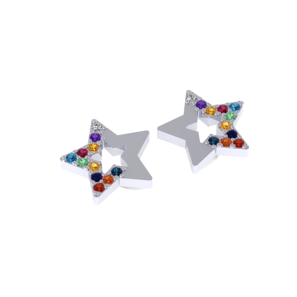 Minđuše od zlata iz Tutti Frutti kolekcije u obliku zvezdica koje krase raznobojni dragulji. Minđuše su jasnih i ravnih linija i pričvršćuju se na klasičan šraf. U zlatari Andrejević, nudimo Vam mogućnost da sami izaberete karatažu, čistoću i boju dijamanata, kao i boju zlata, kako biste bili sigurni da će krajnji rezultat biti upravo minđuše kakve ste želeli.