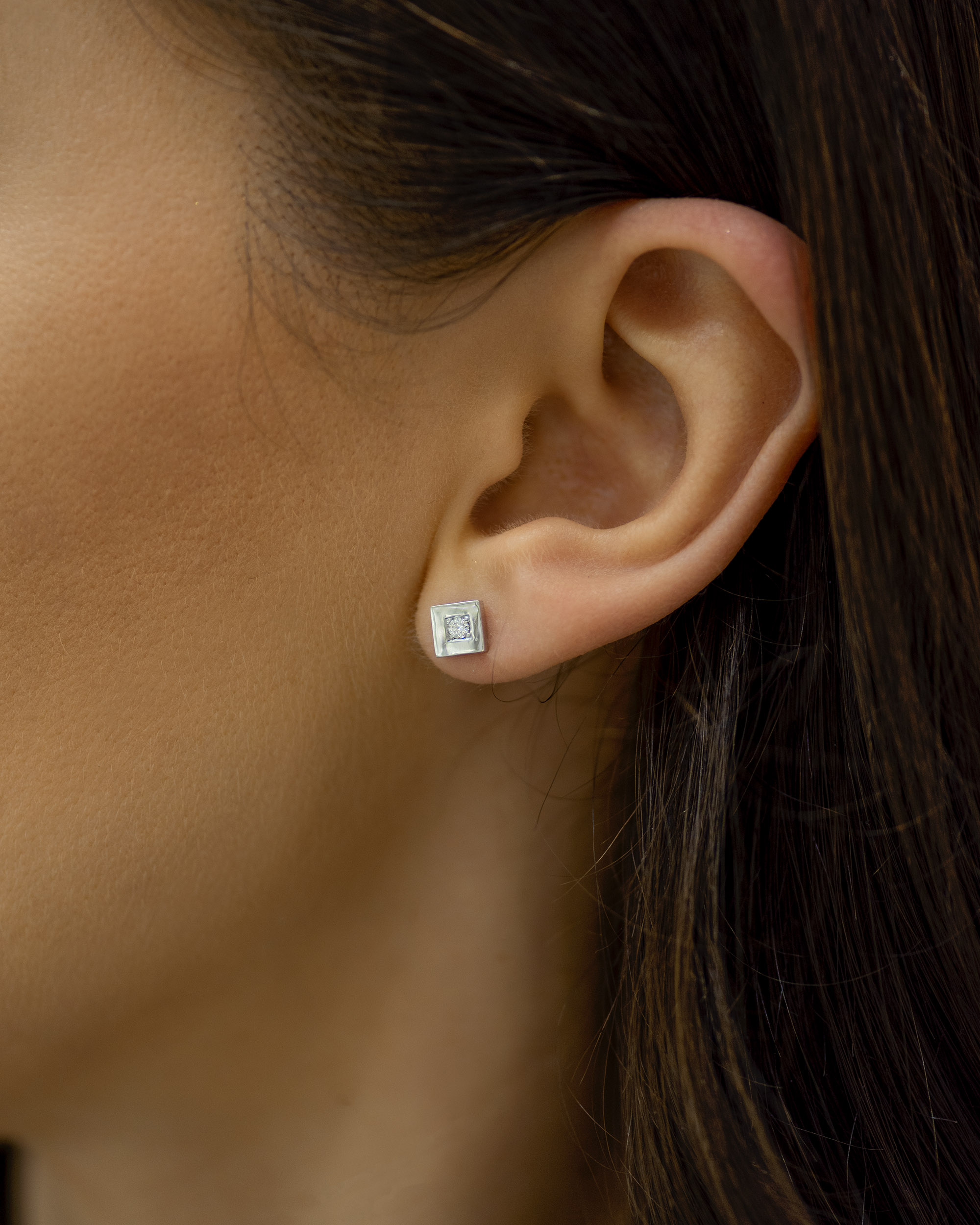 Minđuše od zlata u obliku kvadratića sa dijamantima. Ove zlatne minđuše su jednostavne i pričvršćuju se uz pomoć klasičnih šrafića, a dijamanti su postavljeni u samu sredinu kvadratića. U zlatari Andrejević, nudimo Vam mogućnost da sami izaberete karatažu, čistoću i boju dijamanata, kao i boju zlata, kako biste bili sigurni da će krajnji rezultat biti upravo minđuše kakve ste želeli.