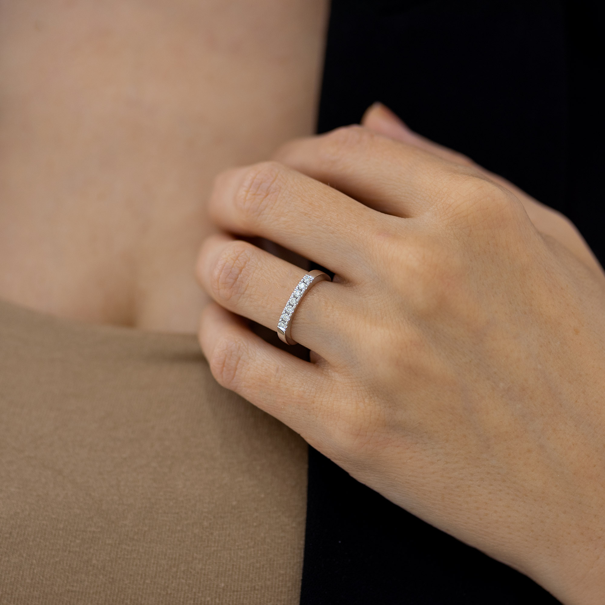 Prsten ,,neopredeljenog” oblika, ali upravo zbog toga poseban! Pored zanimljivog dizajna pažnju će privući i sitni dijamanti vrhunske čistoće! Perfektno su utisnuti u površinu prstena i diskretno odvojeni tankim žlebovima.