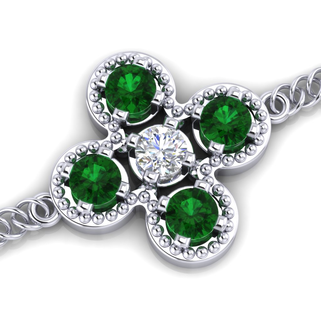 Narukvica od konca sa zlatnim priveskom koji oblikom podseća na detelinu sa četiri lista. Dijamant je smešten u sredinu dok su zagasiti topazi oko njega, a sve zajedno okruženo je sitnim zlatnim kuglicama. Ova narukvica nema klasičnu kopču, već se njena veličina prilagođava ruci osobe koja je nosi. Narukvice zlatare Andrejević mogu biti izrađene u bilo kojoj od 3 boje zlata: beloj, roze, ili žutoj. Uz to, u zlatari Andrejević, nudimo Vam mogućnost da sami izaberete karatažu, čistoću i boju dijamanta kamenja kako biste bili sigurni da će narukvice biti upravo onakve kakve ste želeli.