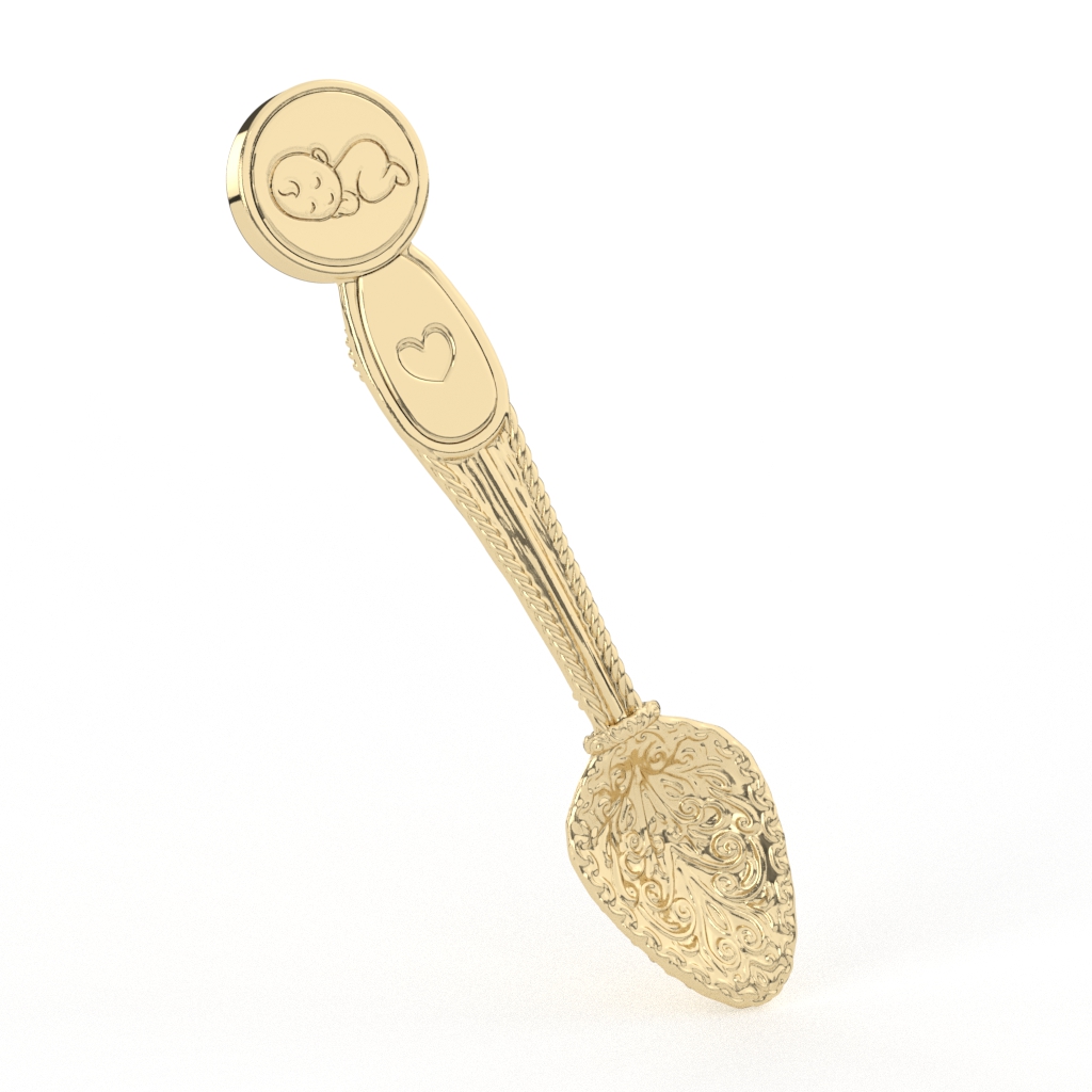 Vredan poklon za krštenje ili rođenje – zlatna kašika. Napravljena od 14-karatnog zlata i ukrašena raskošnim reljefom, po želji može da se personalizuje i izgravira.