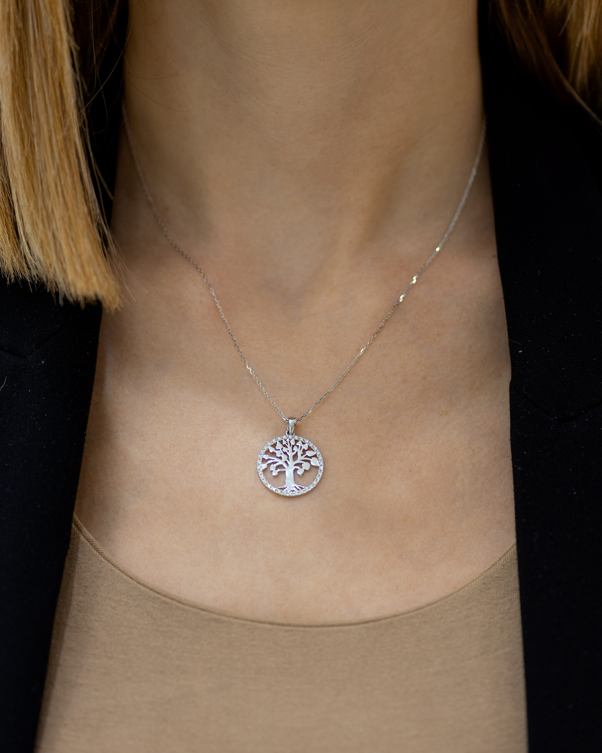 Privezak od zlata u obliku olistalog drveta sa čak 34 dijamanta brilijantskog reza. Drvo života ima listove srcastog oblika i smešteno je u krug od zlata u koji su ufasovani brilijanti. Privezak je izrađen od 14-karatnog zlata izuzetnog sjaja i kvaliteta i ima alku za lančić kroz koju može da prođe i lanac veće debljine. Zlatni privesci zlatare Andrejević mogu biti izrađeni u bilo kojoj od 3 boje zlata: beloj, roze, ili žutoj. Uz to, u zlatari Andrejević, nudimo Vam mogućnost da sami izaberete karatažu, čistoću i boju dijamanta kako biste bili sigurni da će privesci biti upravo onakvi kakve ste želeli.