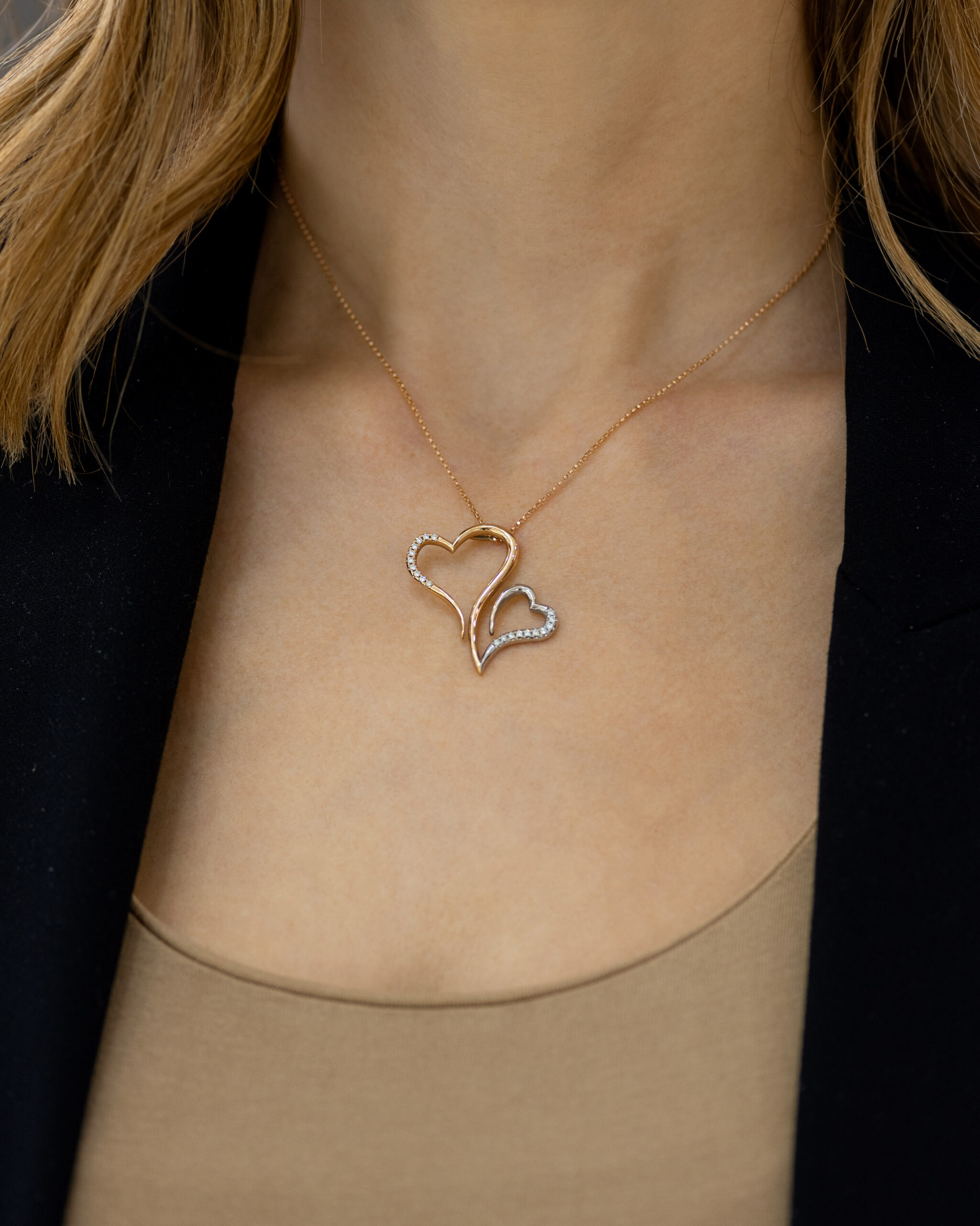 Privesci sa motivom srca su bezvremeni simbol ljubavi u gotovo svim kulturama sveta. Ovo romantično, ručno izrađeno dvostruko zlatno srce sa briijantima, večno će blistati na Vašem vratu. Zlatara Andrejević nudi Vam sigurnu online kupovinu, dostavu na kućnu adresu, kao i mogućnost video prezentacije proizvoda.