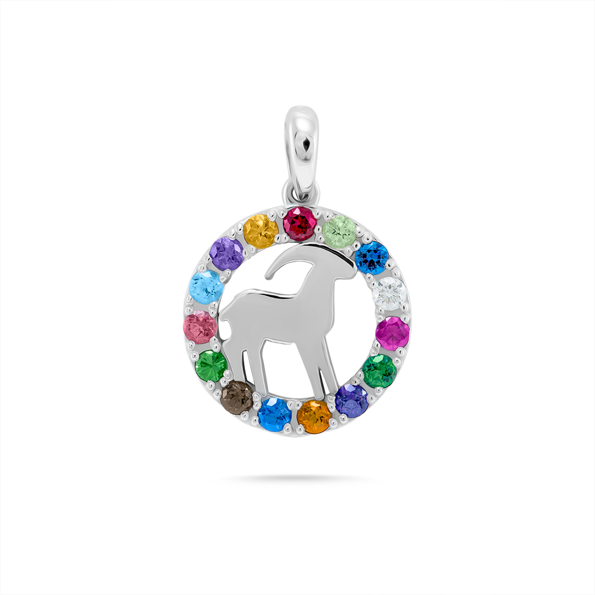 Privezak inspirisan ovim zemljanim horoskopskim znakom pripada poznatoj kolekciji Tutti Frutti. Oblik jarca izrađen je od najfinijeg zlata i smešten je u unutrašnjost kruga. Površina kruga ukrašena je sa četrnaest okruglih, prirodnih kamenčića različitih boja i jednim brilijantom.