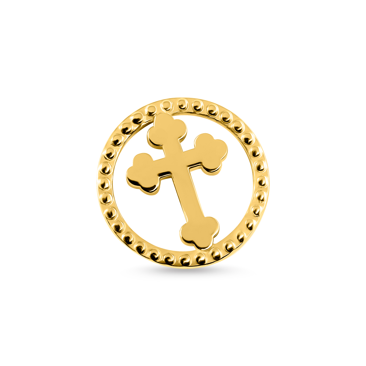 Privezak u obliku pravoslavnog krsta napravljen od najkvalitetnijeg 14-karatnog zlata. Privesci u obliku krsta mogu da se nose oko vrata na lančiću ili oko ruke na narukvici. Ovaj privezak je jednostavan i sveden, krst je bez ukrasa, sa oblim proširenjima na krajevima i smešten je u centar diskretno ukrašenog kruga. Zlatni privesci zlatare Andrejević mogu biti izrađeni u bilo kojoj od 3 boje zlata: beloj, roze, ili žutoj.