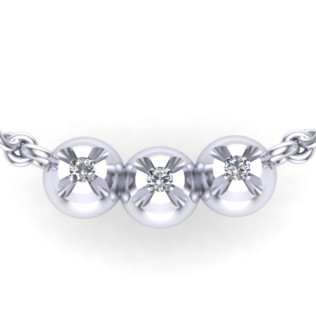 Privezak od zlata u obliku tri kuglice u kojima se nalaze dijamanti. Kuglice su nanizane jedna do druge, a umesto klasične alke, lančić je pričvršćen direktno na privezak čineći ga tako elegantnijim. Zlatni privesci zlatare Andrejević mogu biti izrađeni u bilo kojoj od 3 boje zlata: beloj, roze, ili žutoj. Uz to, u zlatari Andrejević, nudimo Vam mogućnost da sami izaberete karatažu, čistoću i boju dijamanta i drugog dragog kamenja kako biste bili sigurni da će privesci biti upravo onakvi kakve ste želeli.
