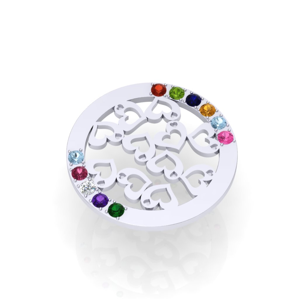 Privezak od zlata u obliku kruga ukrašen sa 11 raznobojnih dragulja. Ovaj Tutti Frutti privezak je napravljen od zlata najvišeg kvaliteta i nema klasičnu alku za lančić. U sredini kruga se nalazi 11 zlatnih srca koja su detaljno izrezbarena. U svakom srcu se nalazi još jedno manje srce, što čini ukupno 22 srca u krugu. Privesci u obliku srca mogu da se nose oko vrata na lančiću ili oko ruke na narukvici. Zlatni privesci zlatare Andrejević mogu biti izrađeni u bilo kojoj od 3 boje zlata: beloj, roze, ili žutoj. Uz to, u zlatari Andrejević, nudimo Vam mogućnost da sami izaberete karatažu, čistoću i boju dijamanta kako biste bili sigurni da će privesci biti upravo onakvi kakve ste želeli.