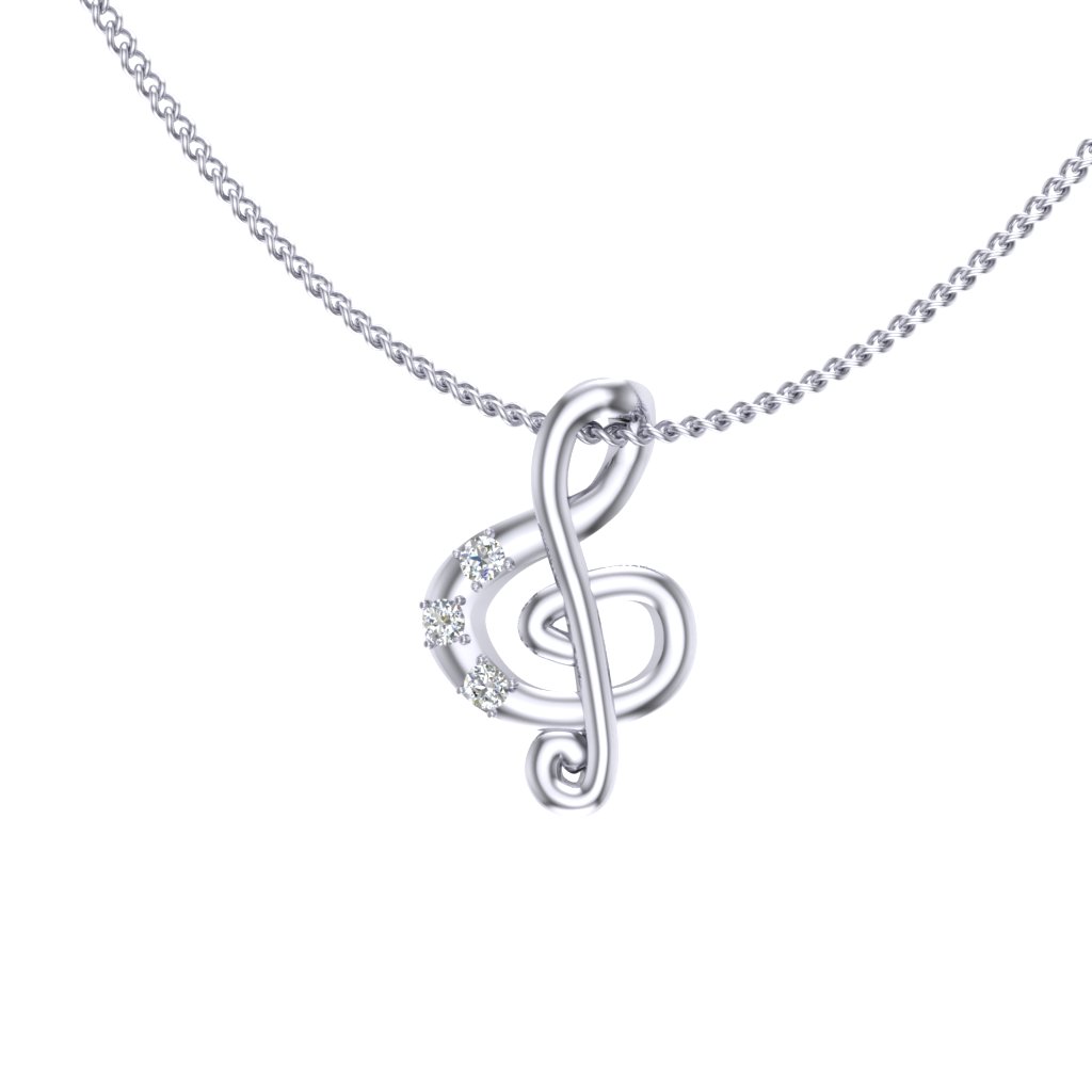 Privezak od zlata u obliku violinskog ključa koji krase tri diskretna brilijanta. Privezak je napravljen od najkvalitetnijeg 14-karatnog zlata i nema klasičnu alku. Umesto kroz alku, lančić se provlači kroz sam privezak, čineći ga tako primetnijim na vratu. Dijamanti su postavljeni sa leve strane priveska i svaki ima po četiri držača oblo brušenih vrhova. Zlatni privesci zlatare Andrejević mogu biti izrađeni u bilo kojoj od 3 boje zlata: beloj, roze, ili žutoj. Uz to, u zlatari Andrejević, nudimo Vam mogućnost da sami izaberete karatažu, čistoću i boju dijamanta kako biste bili sigurni da će privesci biti upravo onakvi kakve ste želeli.