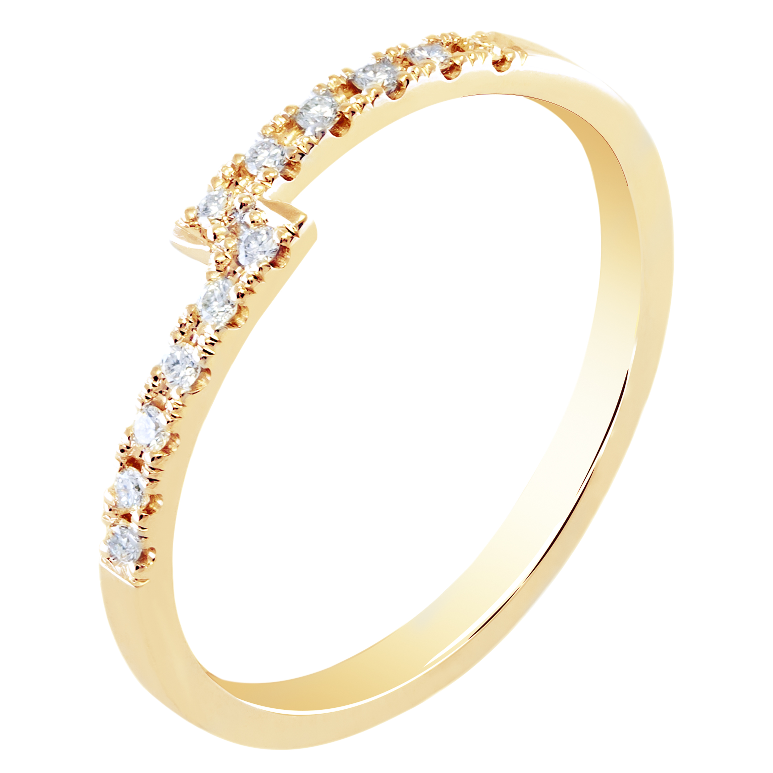 Moderna prsten burma inovativnog dizajna, ukrašena sa 11 blistavih brilijanata odličnih svetlosnih karakteristka. Umesto da formiraju običan krug, krajevi prekinute kružnice prstena se naslanjaju jedan na drugi i na taj način prstenu daju potpuno drugu dimenziju. Prstenje zlatare Andrejević može biti izrađeno u bilo kojoj od 3 boje zlata: beloj, roze, ili žutoj.