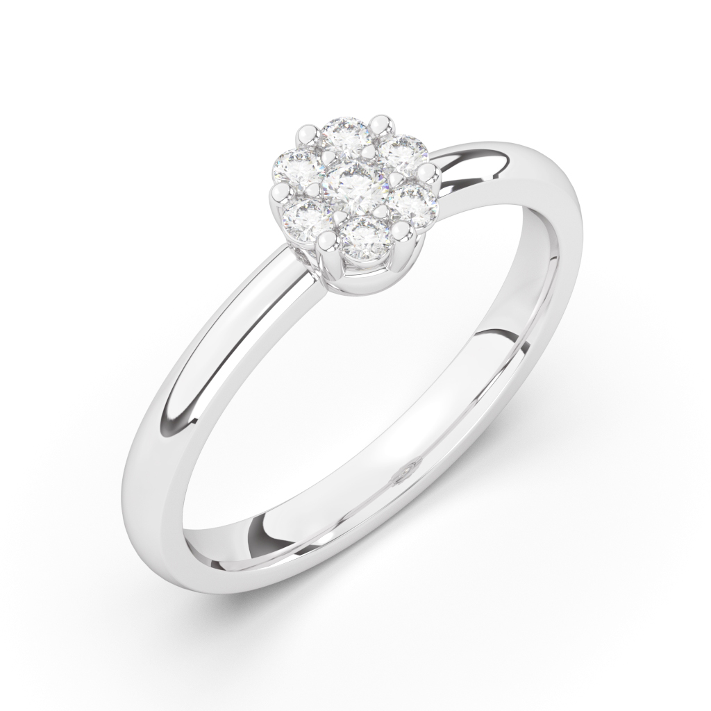 Zlatan prsten modernog izgleda, zanimljivo oblikovan i ukrašen sa sedam brilijanata. Brilijanti su na okruglom, zlatnom elementu raspoređeni tako da obrazuju cvet.