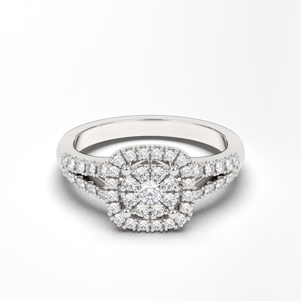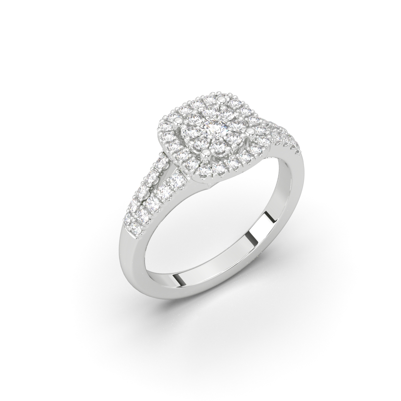 Dijamantski prsten koji nikoga neće ostaviti ravnodušnim. Ovaj neverovatan prsten krasi čak 49 dijamanata izuzetnog sjaja, koji su raspoređeni tako da upijaju i najmanji zrak svetla i blistaju poput zvezda. Kružnica prstena se deli na dva kraka koji pridržavaju četvorougaono postolje blago zaobljenih ivica. Kraci kružnice i čitavo postolje optočeni su dijamantima koji su ufasovani u nestandardne držače i koji divno reflektuju svetlo. U zlatari Andrejević, nudimo Vam mogućnost da sami izaberete karatažu, čistoću i boju dijamanta, kao i boju zlata, kako biste bili sigurni da će krajnji rezultat biti upravo dijamantski prsten kakav ste želeli.
