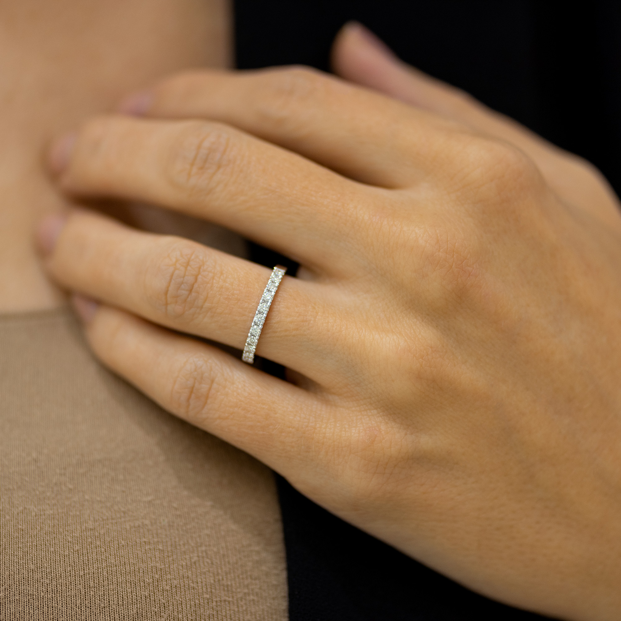 Prsten burma svedenog dizajna ukrašena sa čak 11 dijamanata. Zlato i blistavo drago kamenje čine ovu prsten burmu izuzetnom, dok joj jednostavan dizajn pruža savršenu mogućnost kombinovanja sa drugim prstenjem. Dijamanti nemaju velike držače, što prsten čini još udobnijim za nošenje. Prstenje zlatare Andrejević može biti izrađeno u bilo kojoj od 3 boje zlata: beloj, roze, ili žutoj.