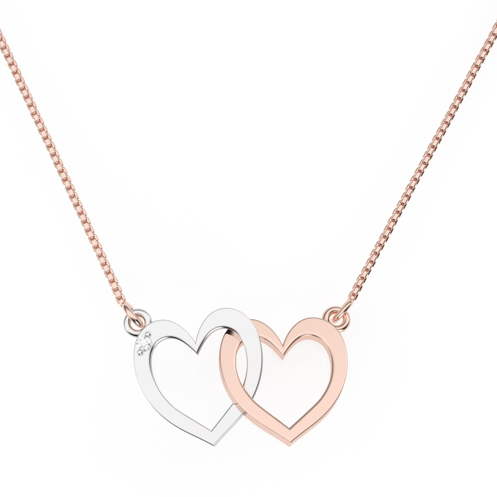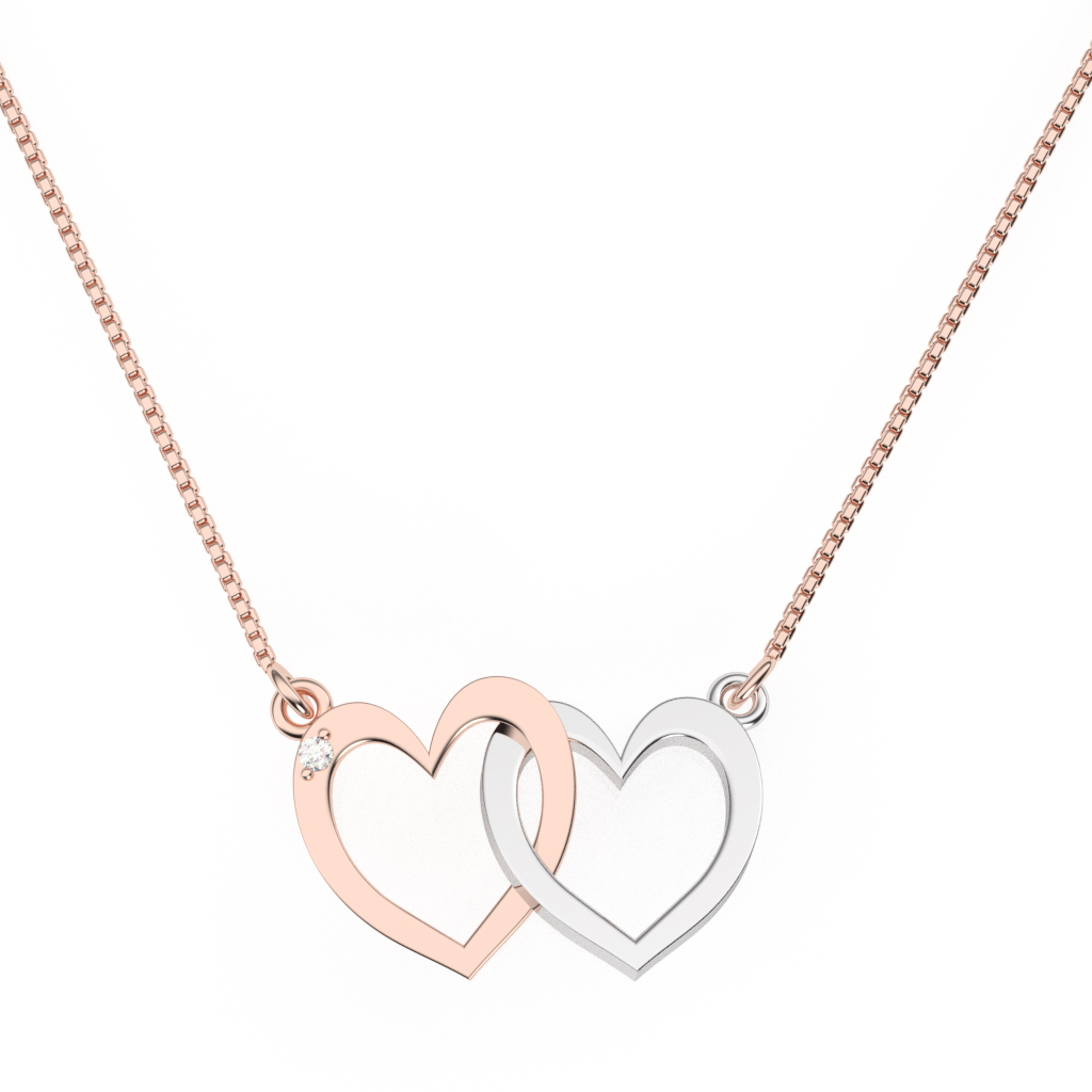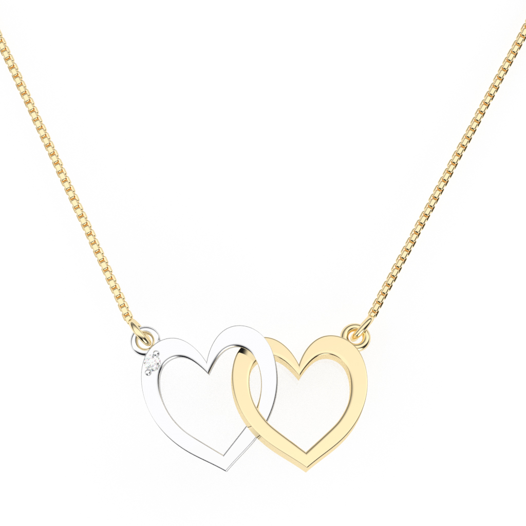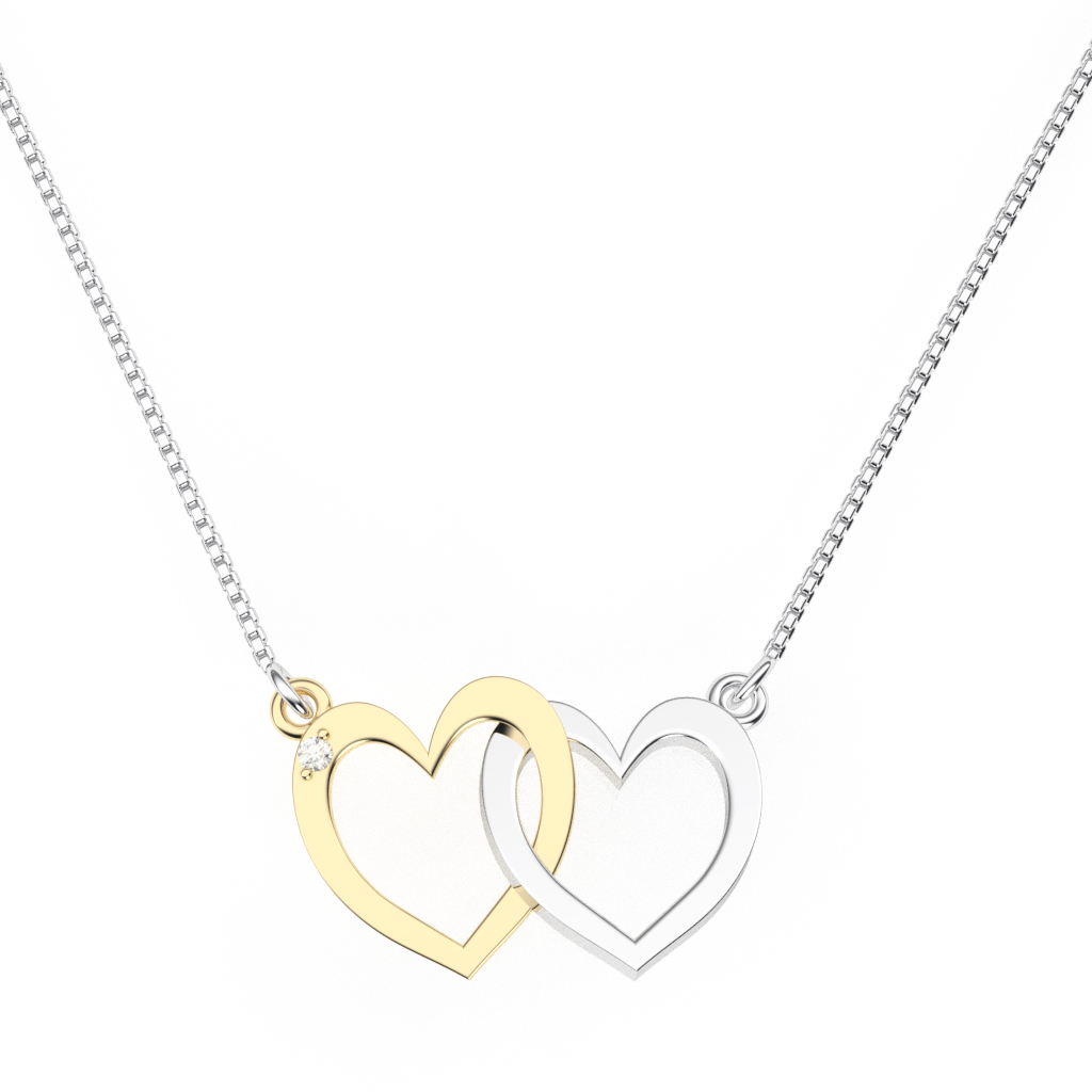 Zlatni privezak u obliku 2 srca sa jednim blistavim brilijantom. Oba srca su savršeno simetrična i spojena tako da se čini da prolaze jedno kroz drugo. Umesto jedne alke kroz koju bi prolazio lančić, isti je pričvršćen za svako srce ponaosob. Privezak je izrađen od zlata izuzetnog sjaja i kvaliteta a jedno od srca krasi brilijant. Prikazana cena, odnosi se na privezak, dok lančić možete odabrati prilikom porudžbine ili kupiti sa lančićem, koji se nalazi već pričvršćen na postojećem privesku.