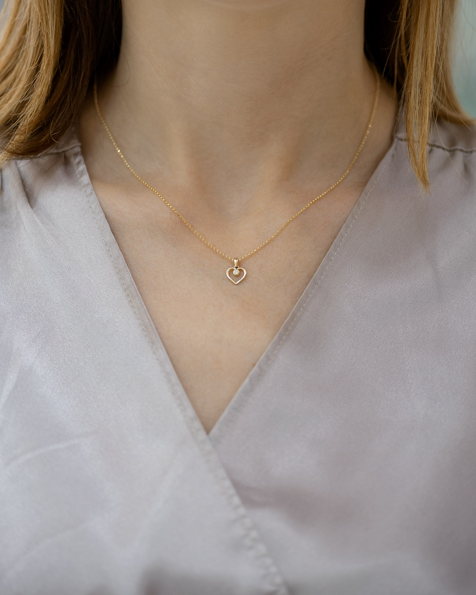 Privezak od zlata u obliku srca koji krasi jedan blistavi dijamant. Privezak je napravljen od najkvalitetnijeg zlata, a dijamant brilijantskog reza i izuzetnog sjaja usađen je u okruglu zlatnu osnovu ispod alke. Alka za lančić je dovoljno velika da privezak srce može da se nosi na tanjem ili debljem lancu. Zlatni privesci zlatare Andrejević mogu biti izrađeni u bilo kojoj od 3 boje zlata: beloj, roze, ili žutoj. Uz to, u zlatari Andrejević, nudimo Vam mogućnost da sami izaberete karatažu, čistoću i boju dijamanta kako biste bili sigurni da će privesci biti upravo onakvi kakve ste želeli.