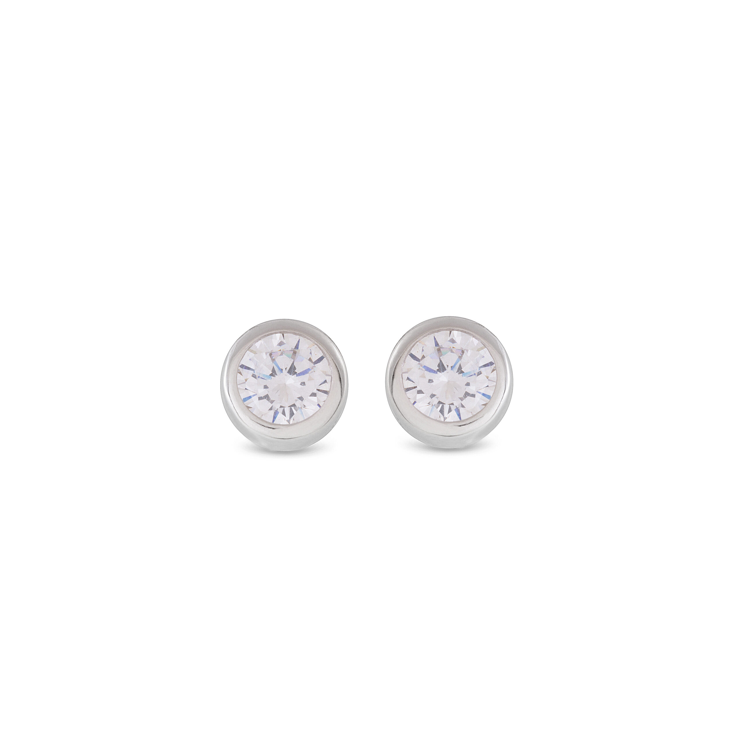 Diskretne Luxenter srebrne minđuše sa okruglim cirkonima umetnutim u okruglu srebrnu osnovu. Kopčaju se na klasičan šraf.