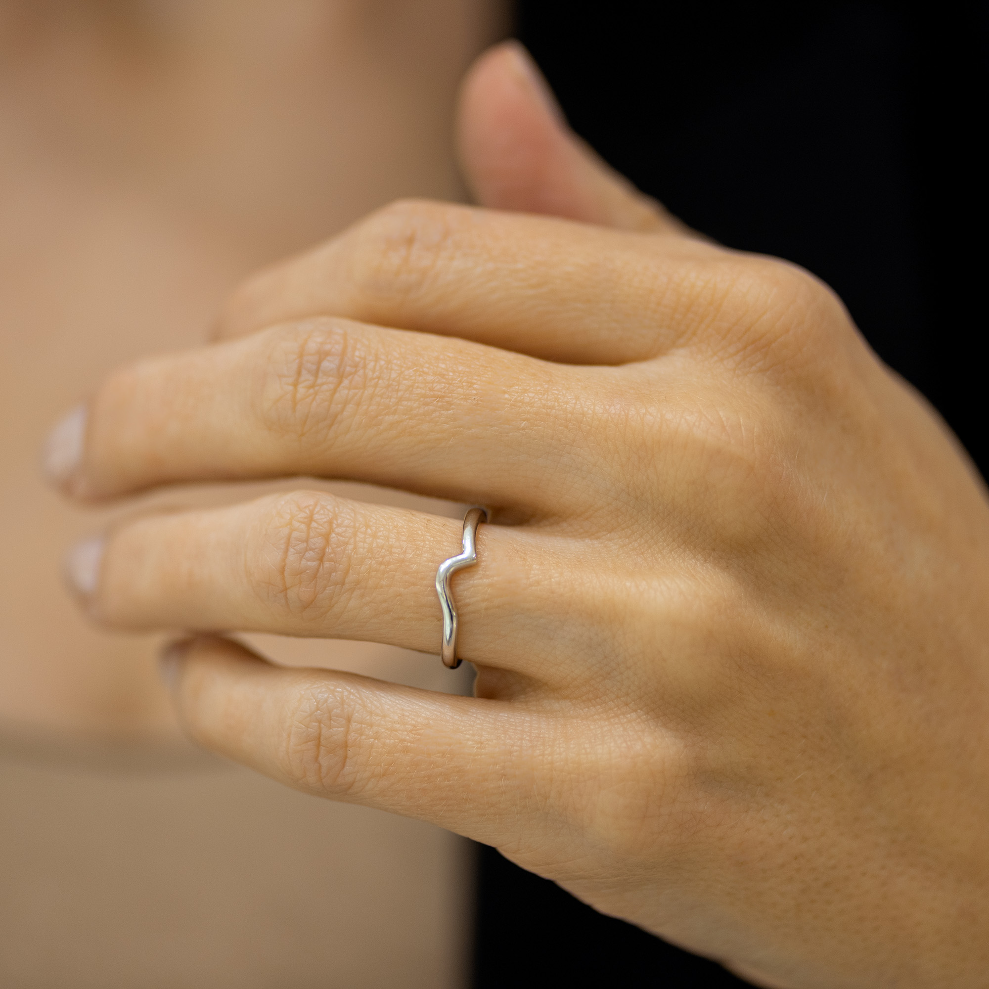 Prsten burma neobičnog oblika, dizajnirana i napravljena tako da se savršeno uklapa sa soliter vereničkim prstenom. Neobičan dizajn nalik talasu i savršeno ispolirano najkvalitetnije zlato čine ovaj prsten upadljivim i elegantnim. Prstenje zlatare Andrejević može biti izrađeno u bilo kojoj od 3 boje zlata: beloj, roze, ili žutoj.